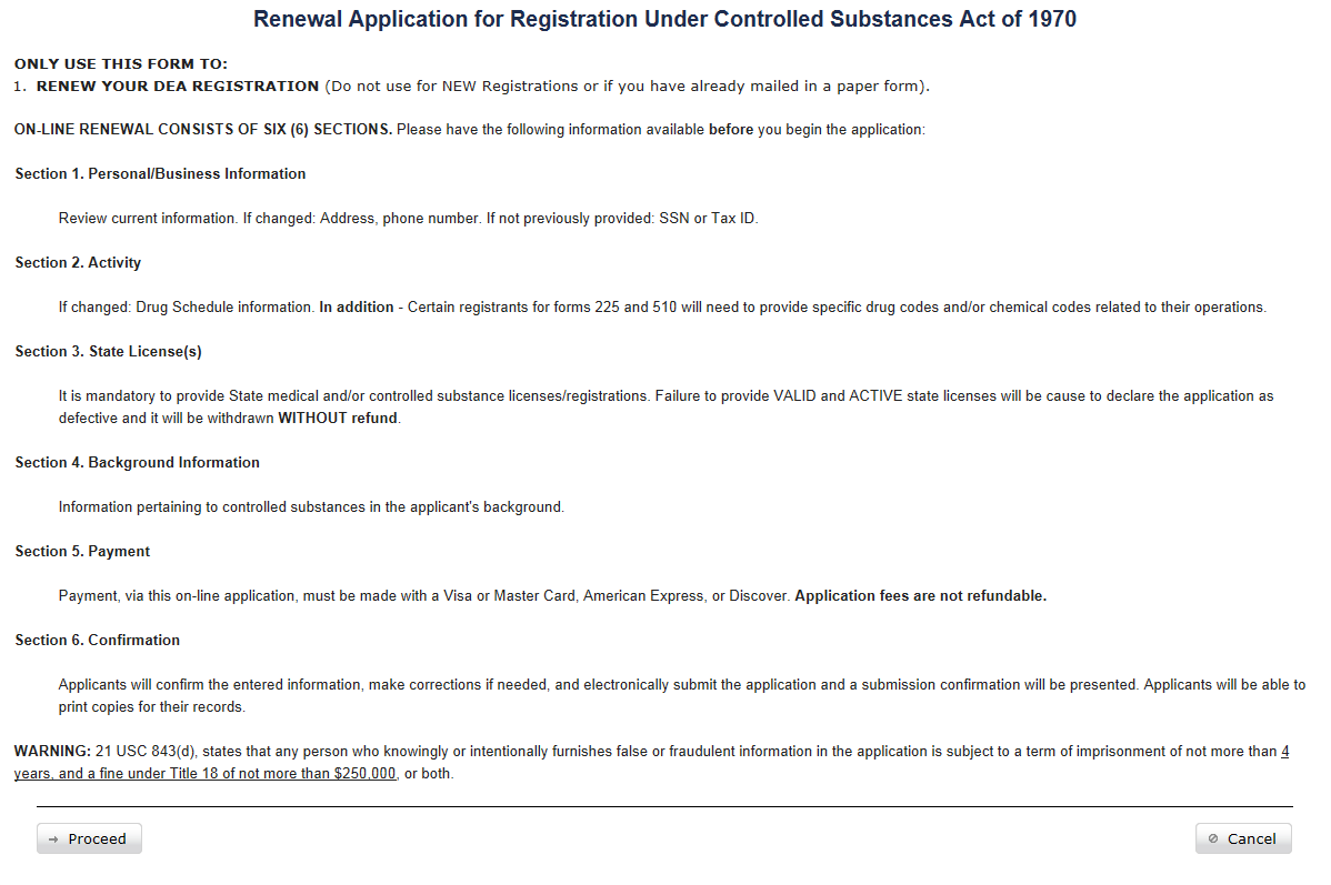 Controlled Substances Act Online: Renewal Applications