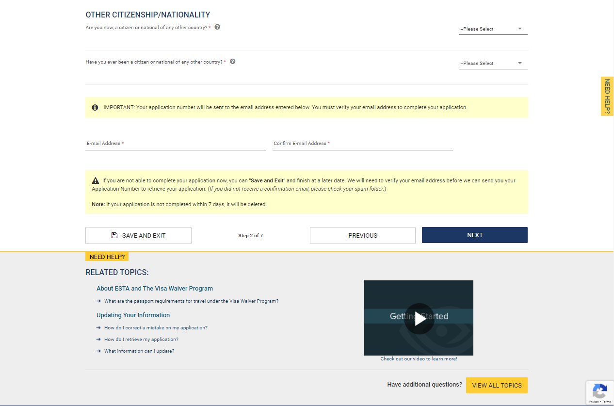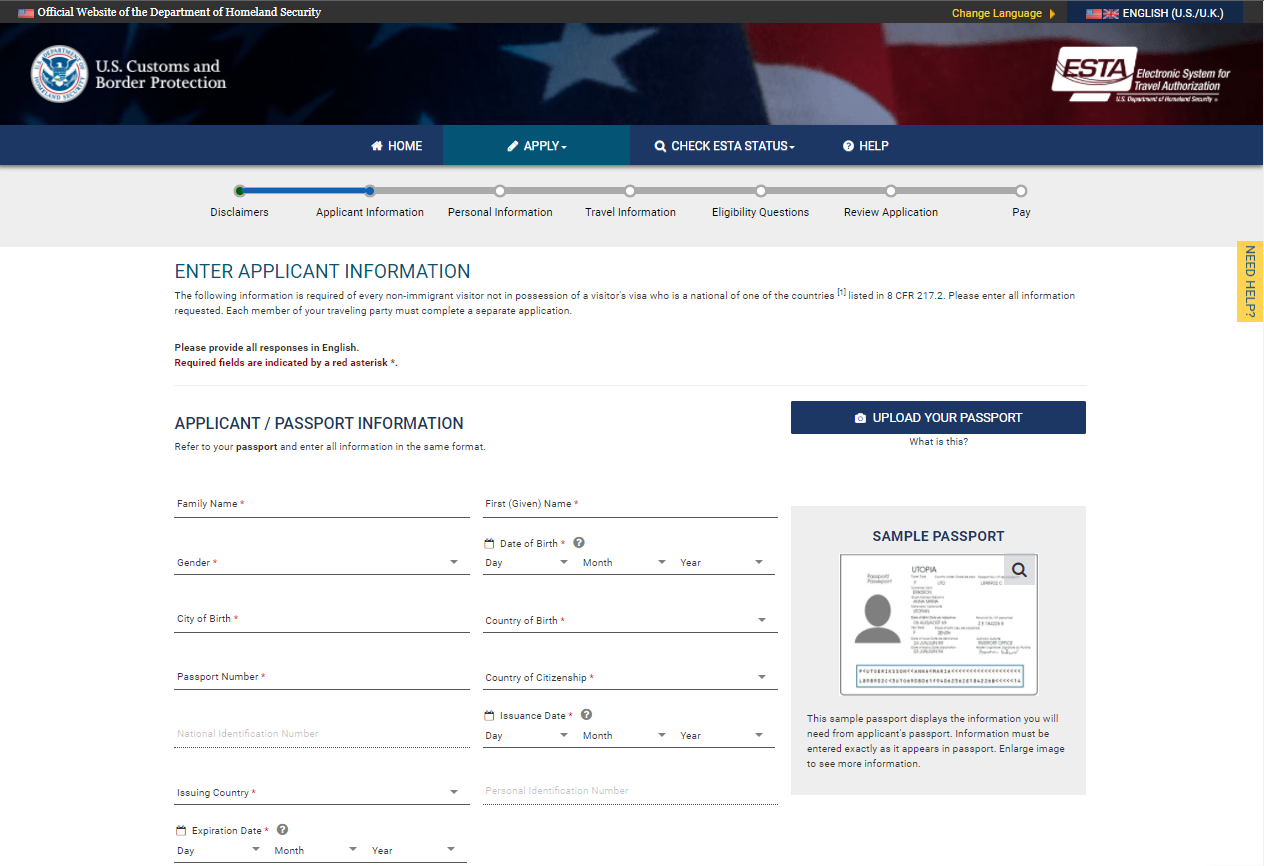 ESTA Link: https://esta.cbp.dhs.gov/