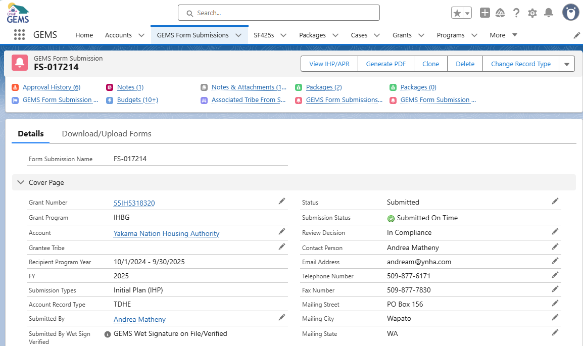 GEMS is a Salesforce based application that automates much of the process for completing and submitting IHPs/APRs, IHP Amendments, IHP Waivers, and Tribal Certifications.