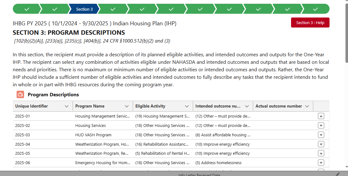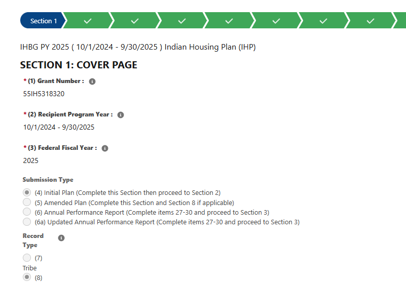 Each year, a recipient of Indian Housing Block Grants uses GEMS to submit an IHP/APR (form HUD-52737).