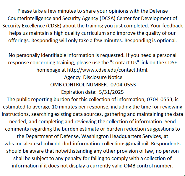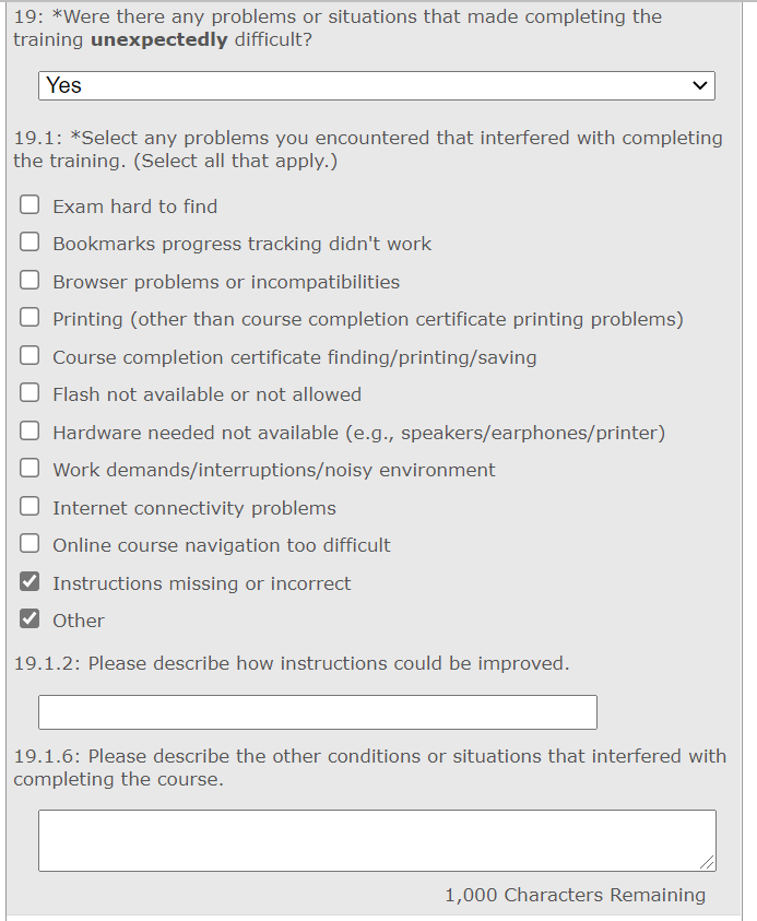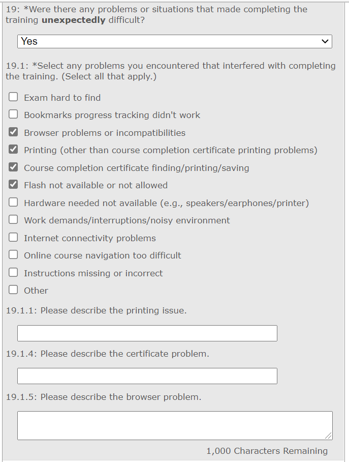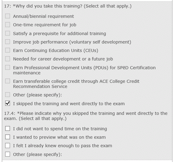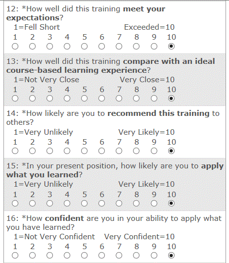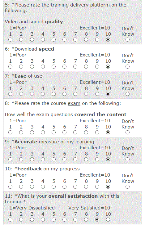 CDSE eLearning Course Student Evaluation Survey Screen Captures
