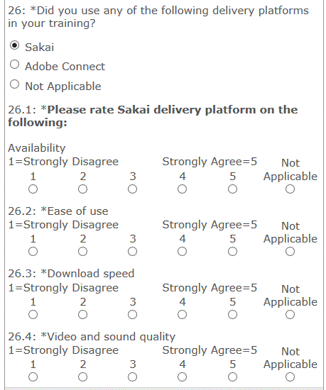 CDSE Instructor Led Class Student Evaluation Survey Screen