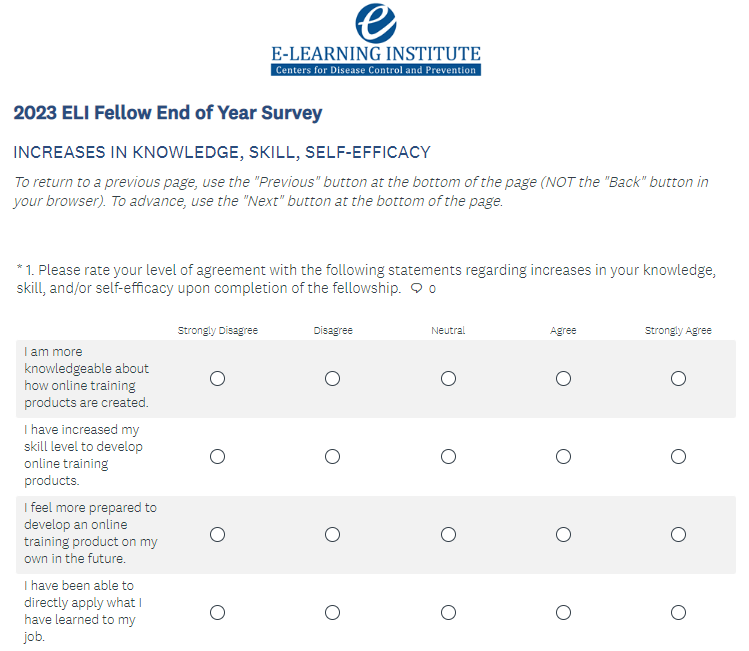 Attachment 2: ELI Fellow End of Year Survey – Survey Monkey