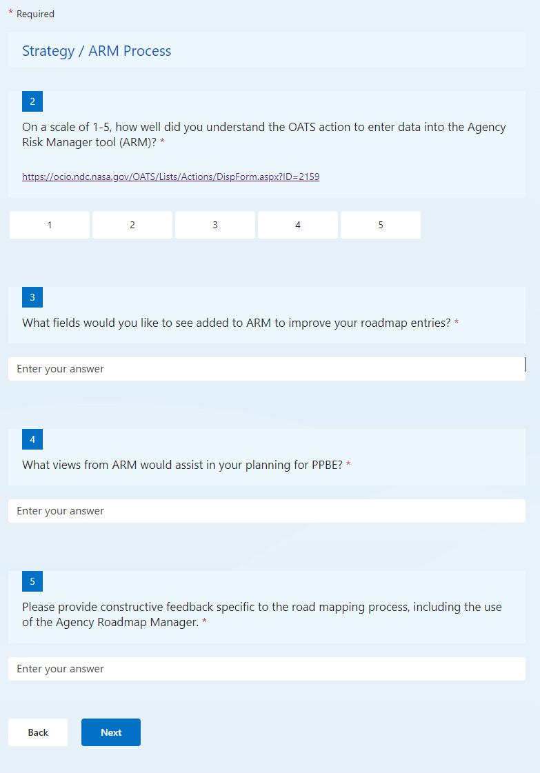 Please provide constructive feedback specific to the road mapping process, including the use of the Agency Roadmap Manager.