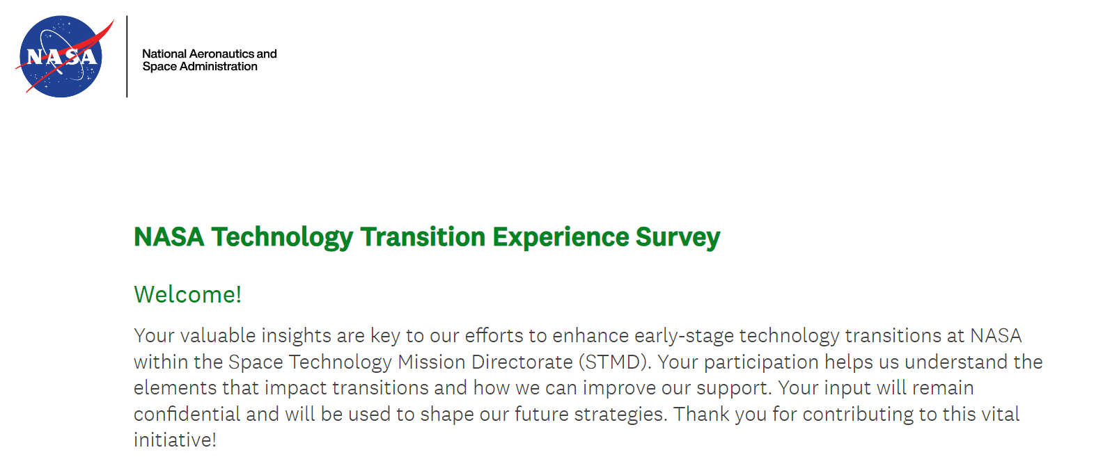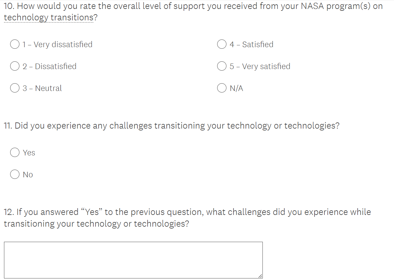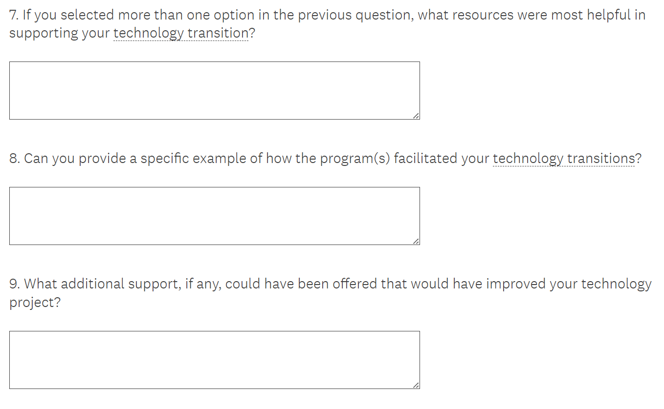 Tech Transitions Survey Screen Shots