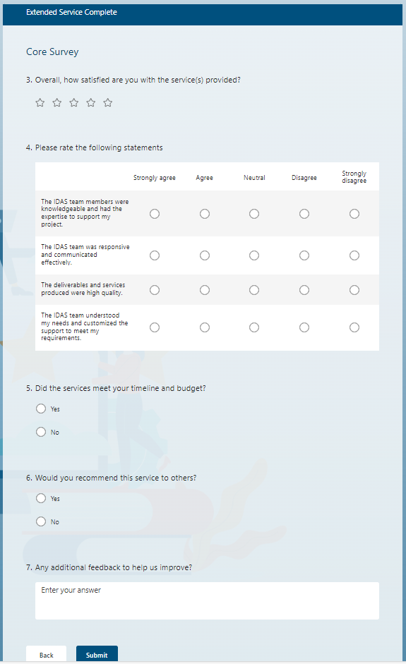 Please select the service(s) you received from IDAS. (Drop down list of options)