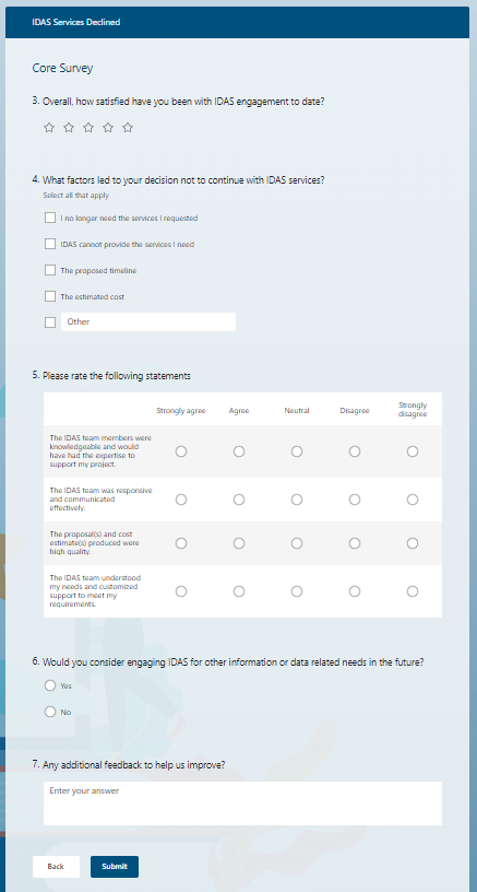 WHO: Customers who began developing a custom Service Level Agreement (SLA) with Information Data and Analytics Services (IDAS), but decide not to proceed with service delivery (NASA Internal Only – Civil Servants and Contractors)