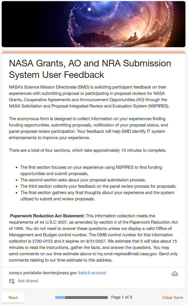 OMB: 2700-0153