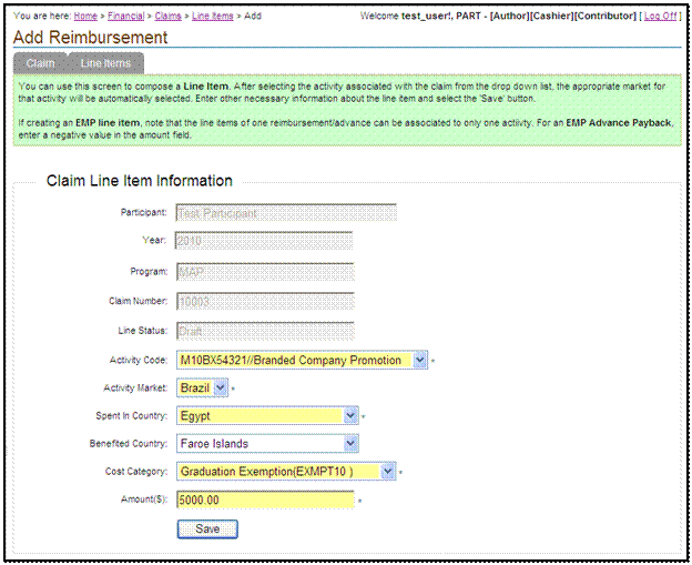 The TASC reimbursement data entry screen.