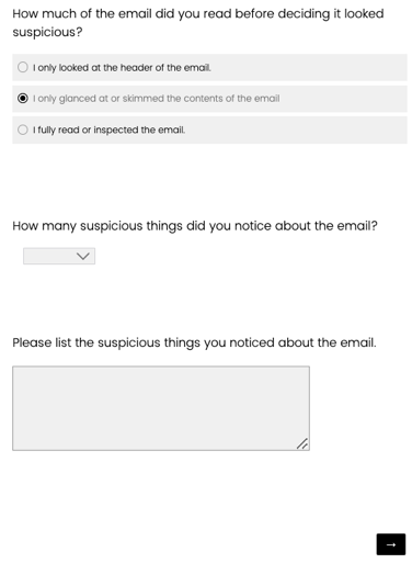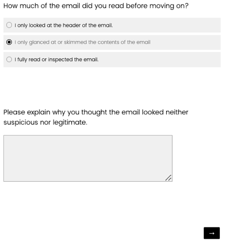 These questions are also shown if they select “I fully read