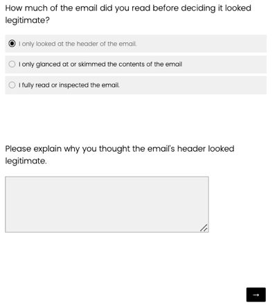 the email” then they are shown these questions. If they do not