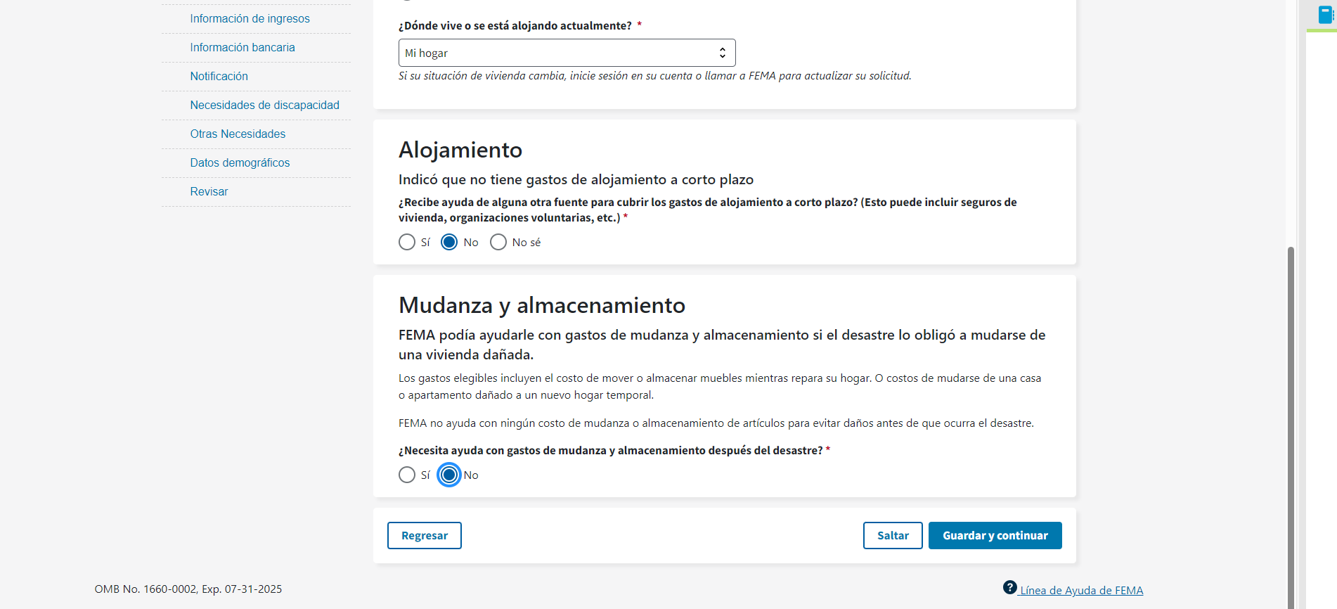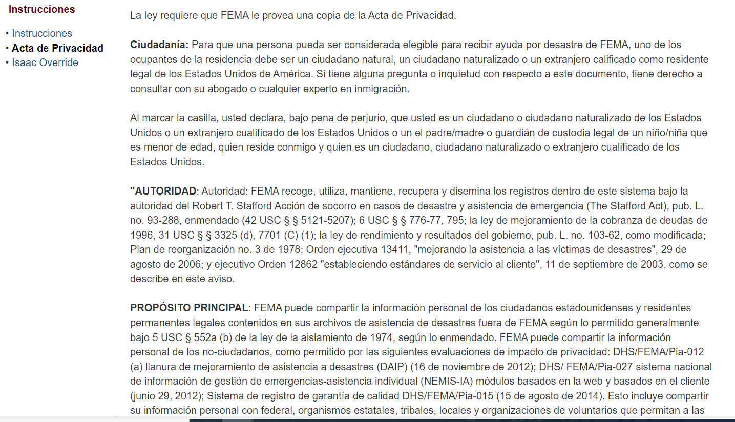 FEMA Form FF-104-F Tele-Registration, Registro Para Asistencia De Desastre