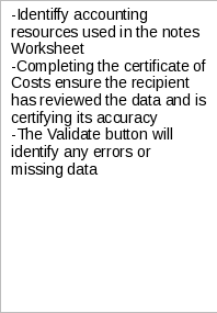 6. Press the "Validate" button on the "Certificate of Costs" tab in order to finalize the data