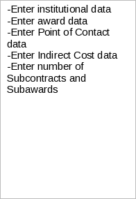 Subawards Worksheet: The Subawards Worksheet provides detail of costs for each subaward. A Subaward means an award provided by a pass-through entity to a subrecipient for the subrecipient to carry out part of the scope under a Federal award. It does not include payments to a contractor or payments to an individual that is a beneficiary of a Federal program. A subaward may be provided through any form of legal agreement, including an agreement that the pass-through entity considers a contract. All Subawards with award amounts > $25,000 must be broken out individually on the Subawards worksheet. Subawards under $25,000 may be accumulated into one row and submitted with a separate spreadsheet/accounting system report listing the cumulated subawards and amounts. The Worksheet provides for 100 agreements, but more rows may be added, if necessary. Make sure you enter the subaward type (e.g. cost-reimbursement or fixed amount). Add other important information in "Recipient Preparation Notes".