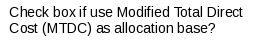 Indirect Cost Rate Worksheet: The purpose of the Indirect Cost Rate Worksheet is to capture details associated with the indirect cost rates. The schedule of indirect cost includes the period of performance start and end dates, the base amount, and rate applied for each identified rate type such as Facilities & Administrative, General & Administrative, or other specified. If using Modified Total Direct Cost (MTDC) as your allocation base, click the checkbox.