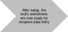 This process diagram indicates the steps to complete the data collection tool. It identifies the core data sources recipients should utilize to complete the worksheets to accurately capture the data. Progressing through the tool's worksheets from left to right will streamline the data capture and submission process.