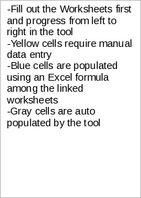 2. Throughout this workbook, the cells that are intended for data entry by the recipient are shaded a light yellow. All other cells (blue or gray) are linked/protected based on other cell data