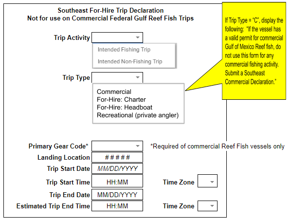 0648-0016 Trip Declaration Form Screenshot