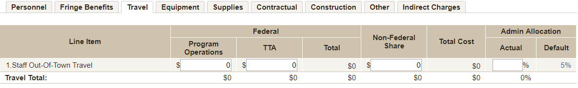 Training and technical assistance funds are awarded separately by program. Describe the use of these funds, by object class budget category identified within the SF-424A Section B-6, to support the recipient’s training and technical assistance activities.