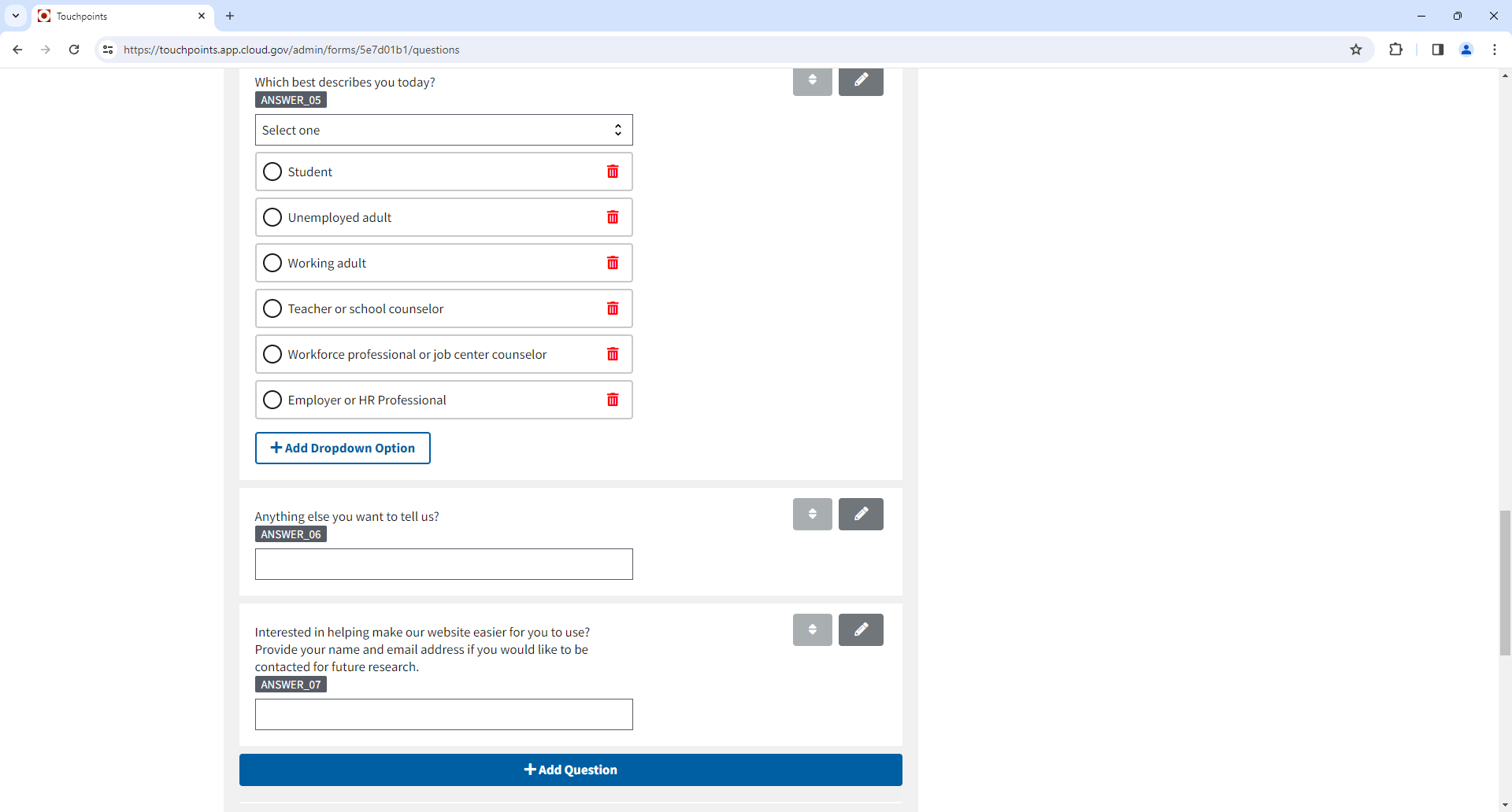 Screen capture from TouchPoints survey instrument