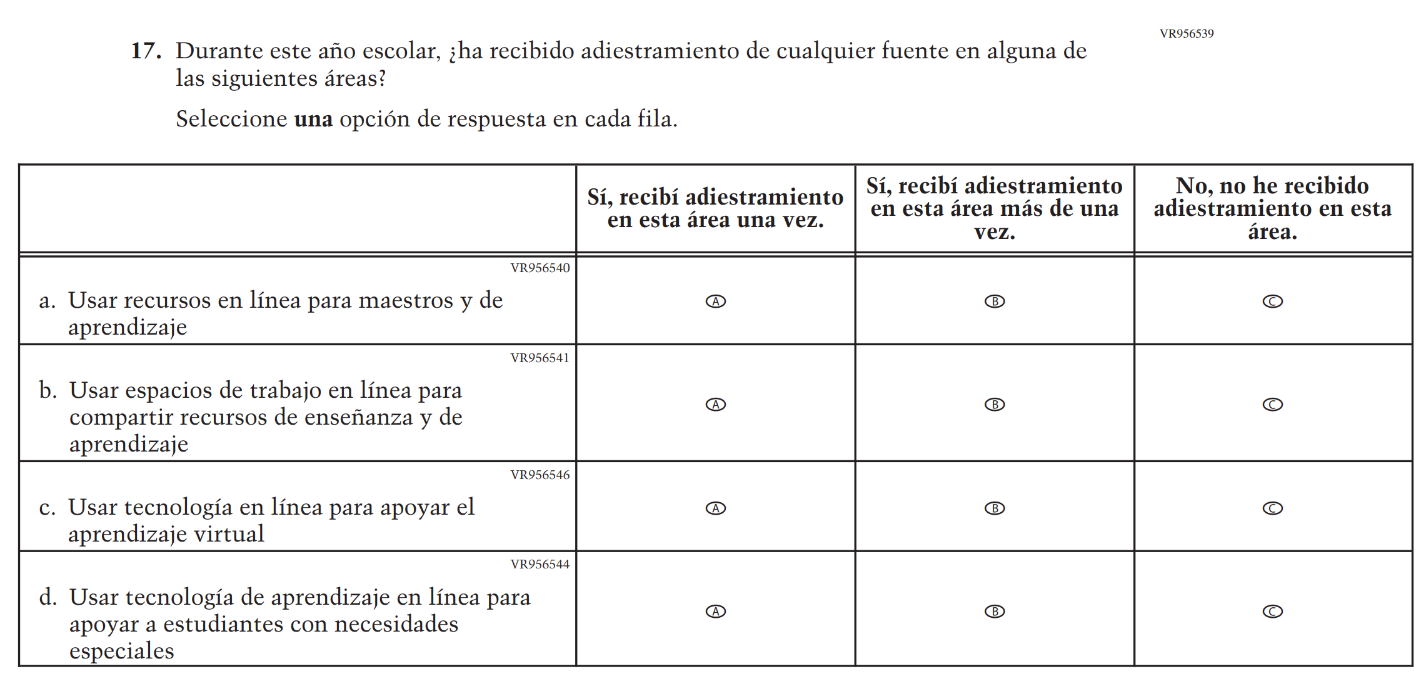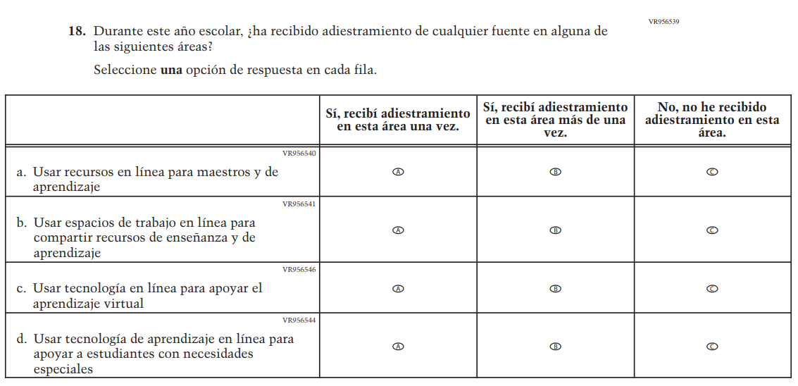 For 2026, we have aligned Inline Directions in Teacher and School Items with the Directions currently used in Student Items.  Also, SubItem e. from 2024 was dropped for 2026.