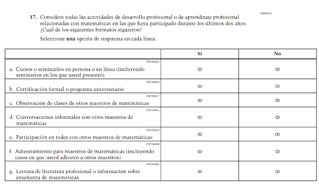 We revised “por ejemplo” to “p.ej.” to be consistent with the phrasing used elsewhere in Teacher and School Items.