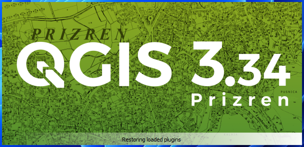 Select QGIS Desktop 3.34.3 from the Start Menu. The QGIS splash screen appears.