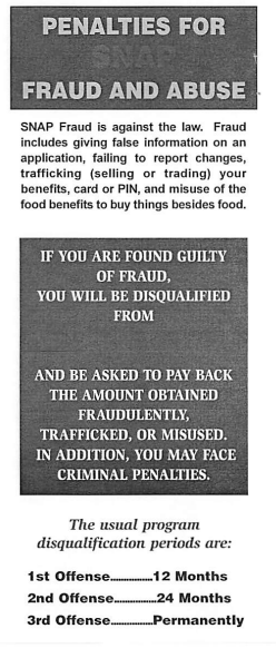 [POINT TO FIRST PARAGRAPH, THIRD SENTENCE] This line says that someone who breaks the rules can be barred from SNAP. What does “barred” mean to you?