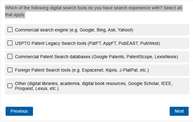 Which of the following digital search tools do you have search experience with? Select all that apply.