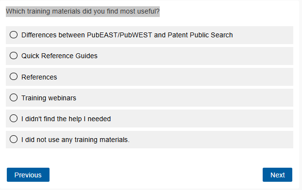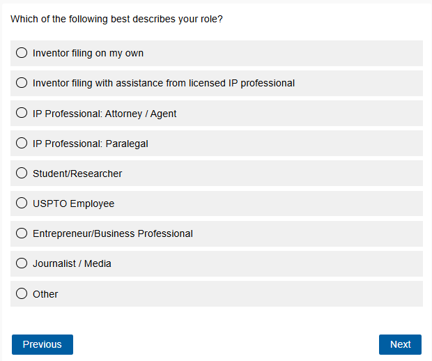 A Federal agency may not conduct or sponsor, and a person is not required to respond to, nor shall a person be subject to a penalty for failure to comply with an information collection subject to the requirements of the Paperwork Reduction Act of 1995, unless the information collection has a currently valid OMB Control Number. Response to this information collection is voluntary; however, it allows the USPTO to analyze the overall effectiveness of the program. Send comments regarding this burden estimate or any other aspect of this information collection, including suggestions for reducing this burden to the Chief Administrative Officer, United States Patent and Trademark Office, P.O. Box 1450, Alexandria, VA 22313-1450 or email InformationCollection@uspto.gov.