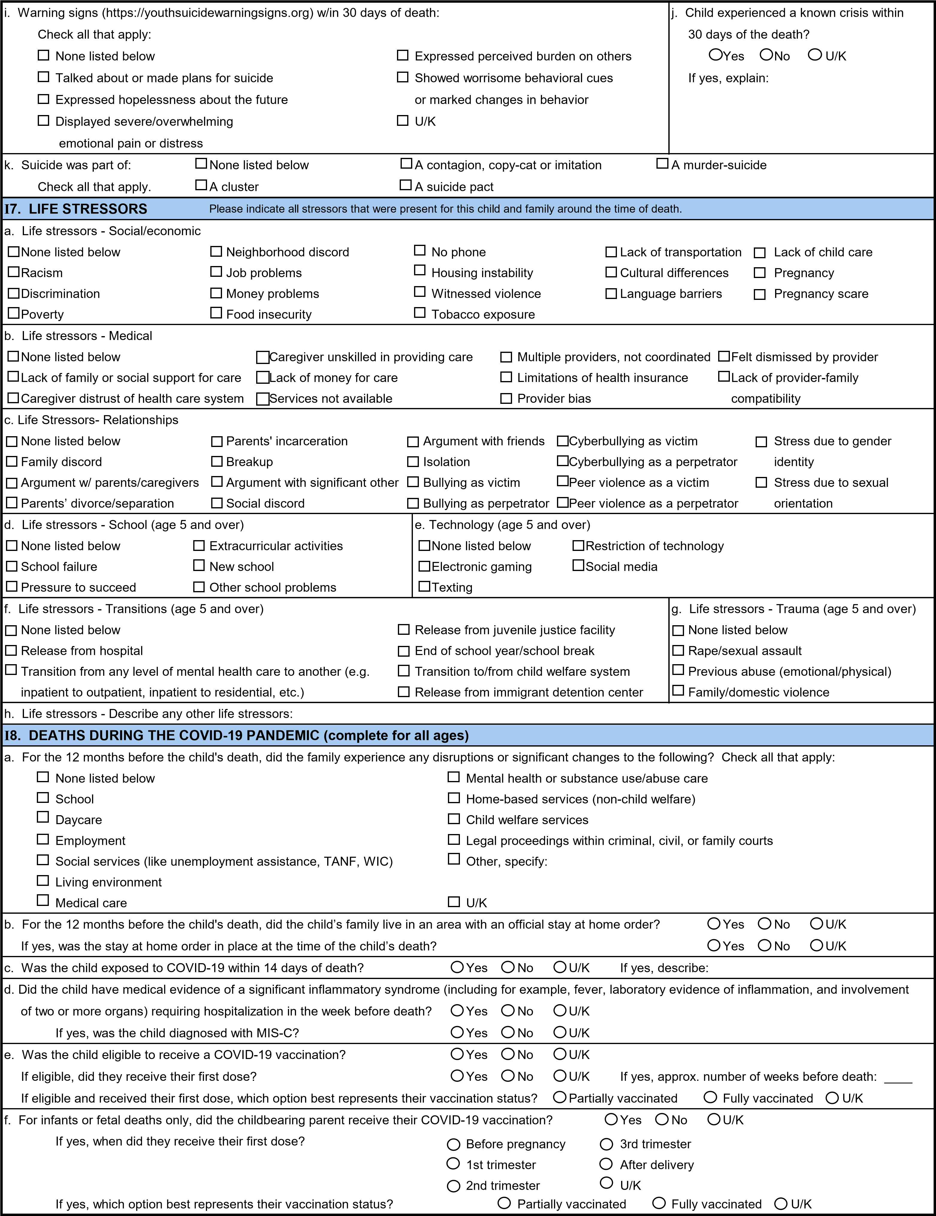 I1. SUDDEN AND UNEXPECTED DEATH IN THE YOUNG (SDY) This section displays online based on your state's settings. |
