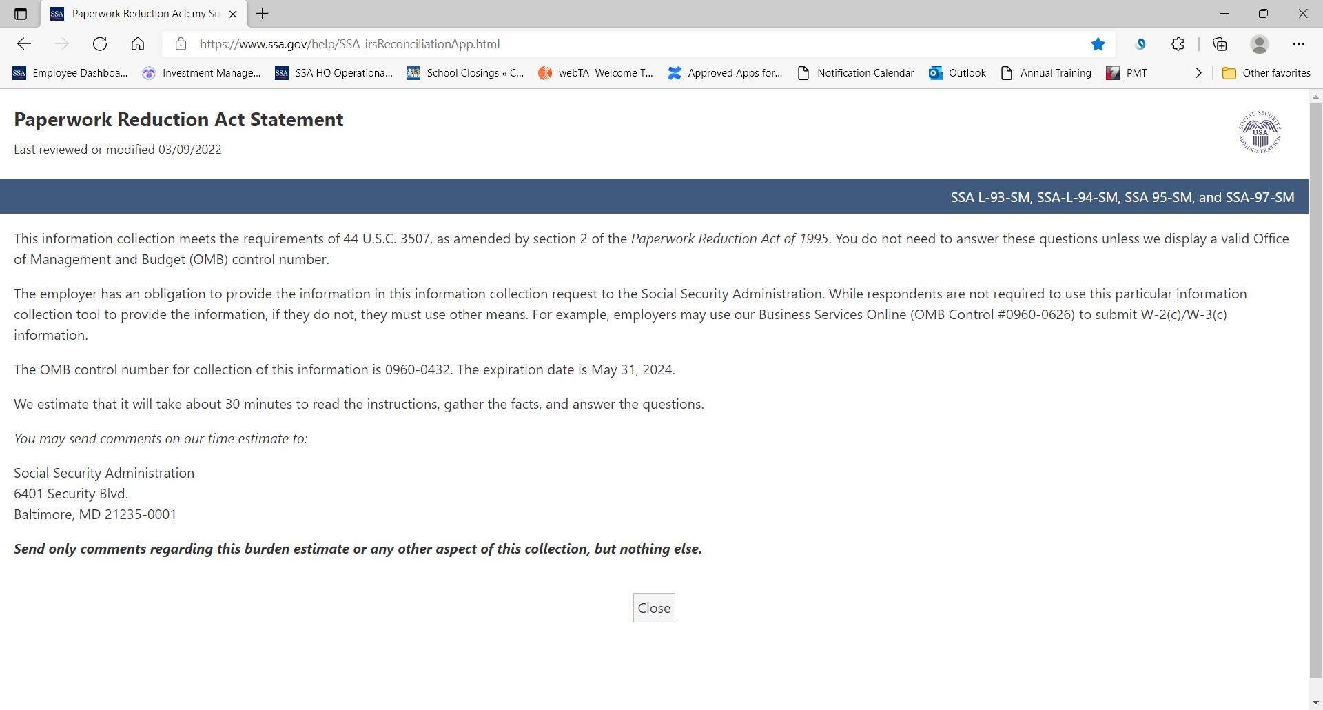 Recon Paperwork Reduction Act Pop-up screen - 0432
