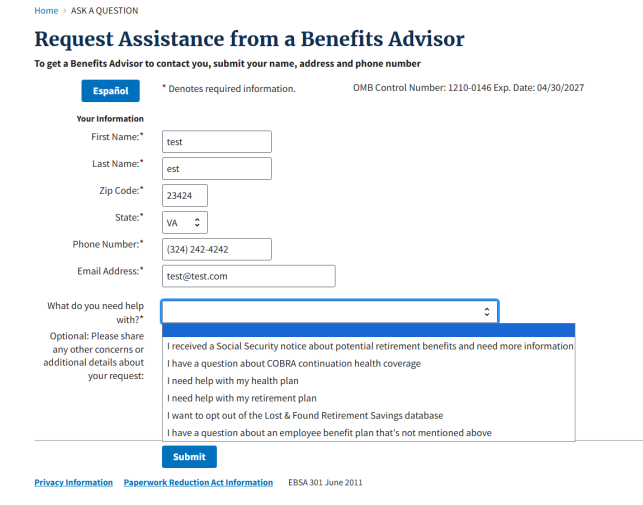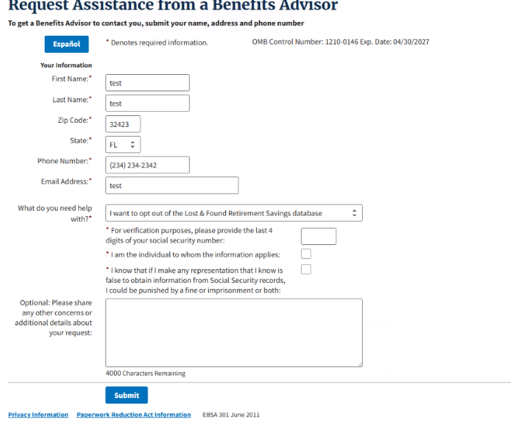 If opt out was selected – these screens will appear. Important note: This is how the form operates now for this selection.