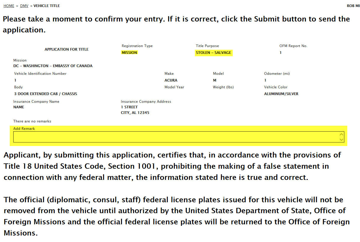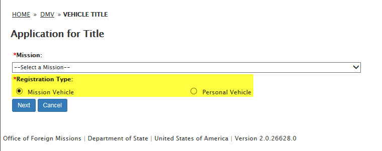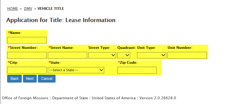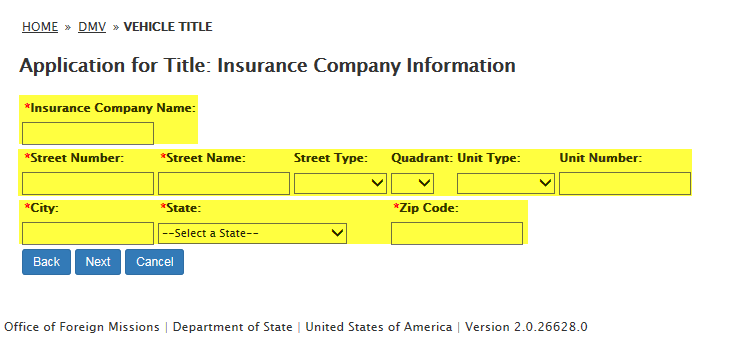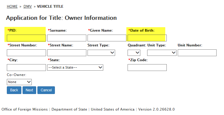 DS-102 Form / Application for Vehicle Title Request: eGov pages