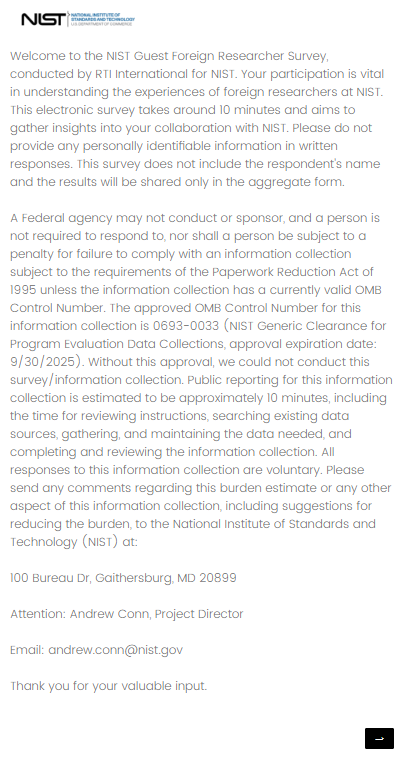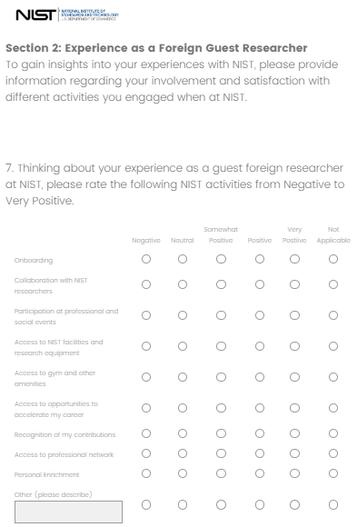 The NIST Foreign Guest Researchers Survey Instrument