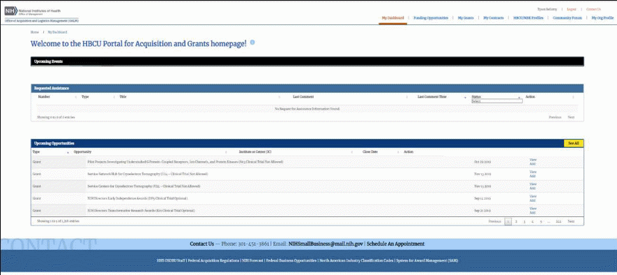 Search for and record NIH grant opportunities that you intend to pursue or received notification regarding.