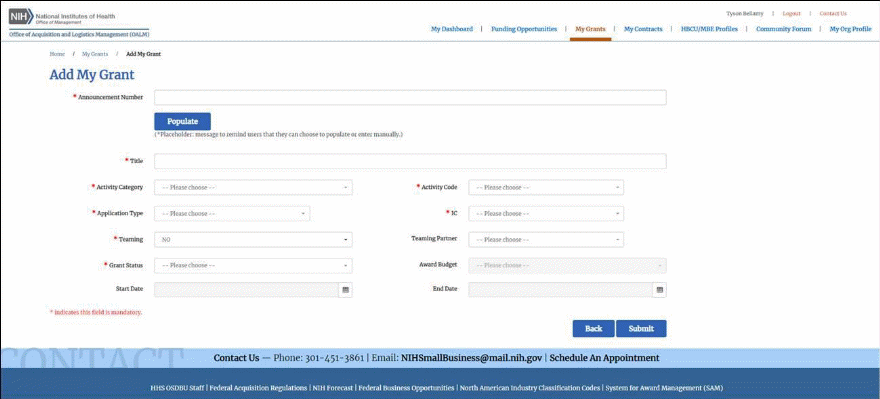 Input organizational data to create a profile accessible to potential teaming partners and NIH staff.