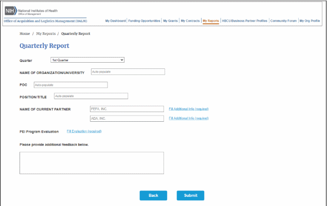 Reporting dashboard to edit, submit, and download monthly, quarterly, and annual reports