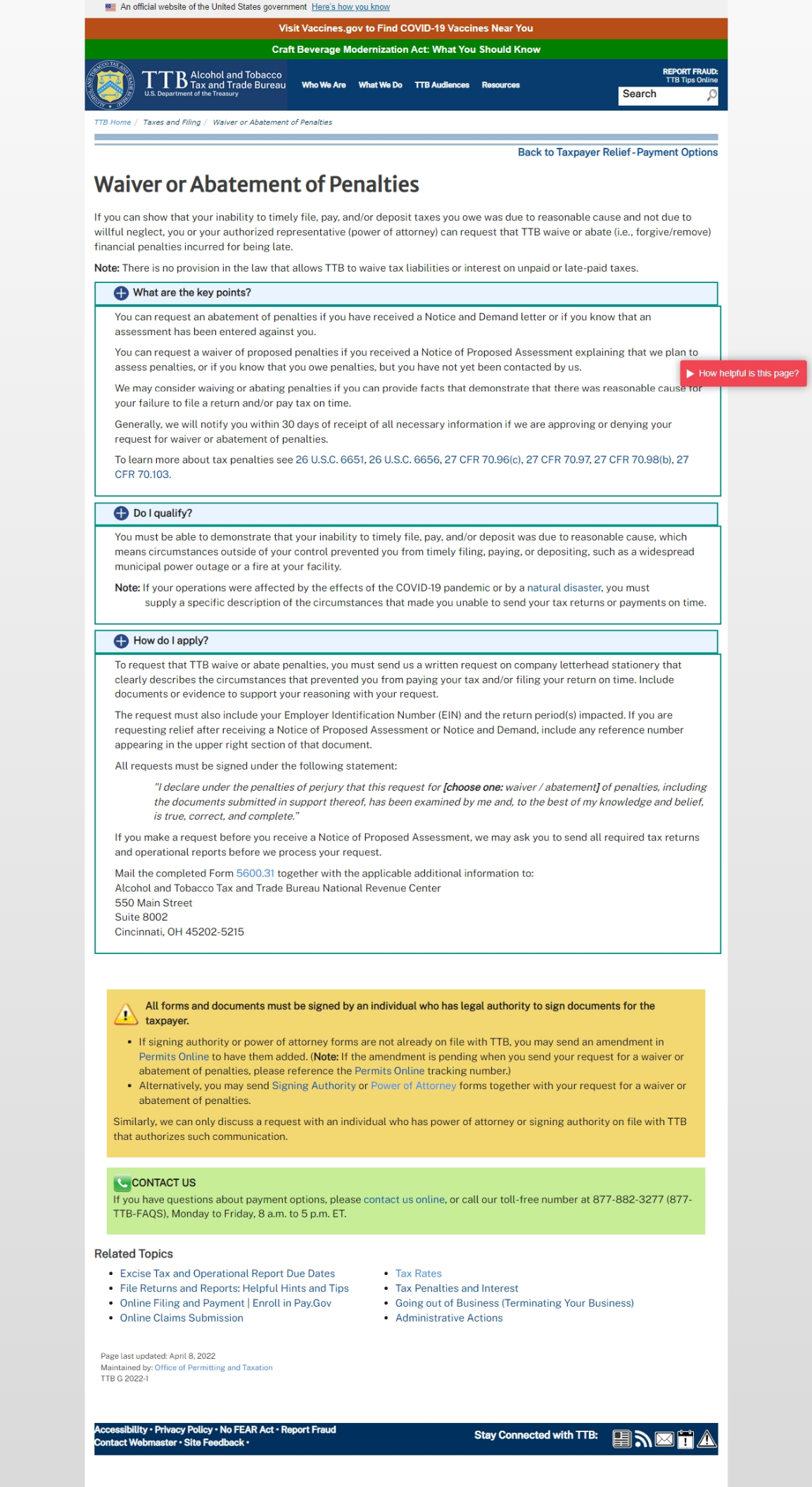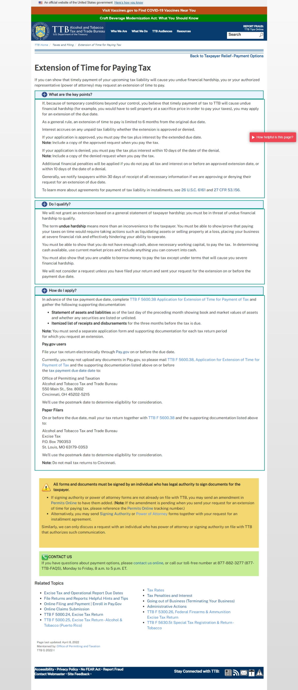TTB G 2022–1, Taxpayer Relief – Payment Options