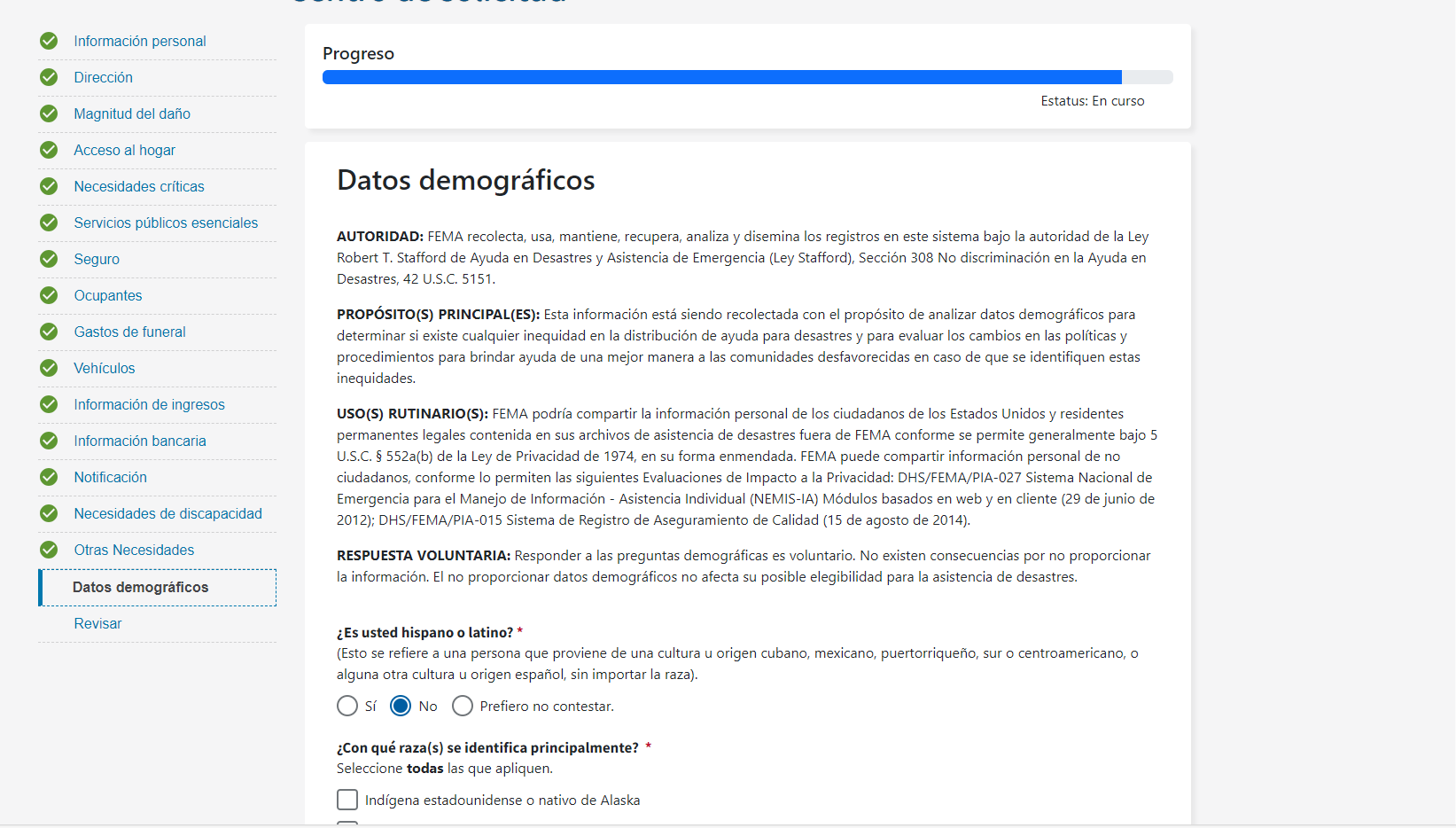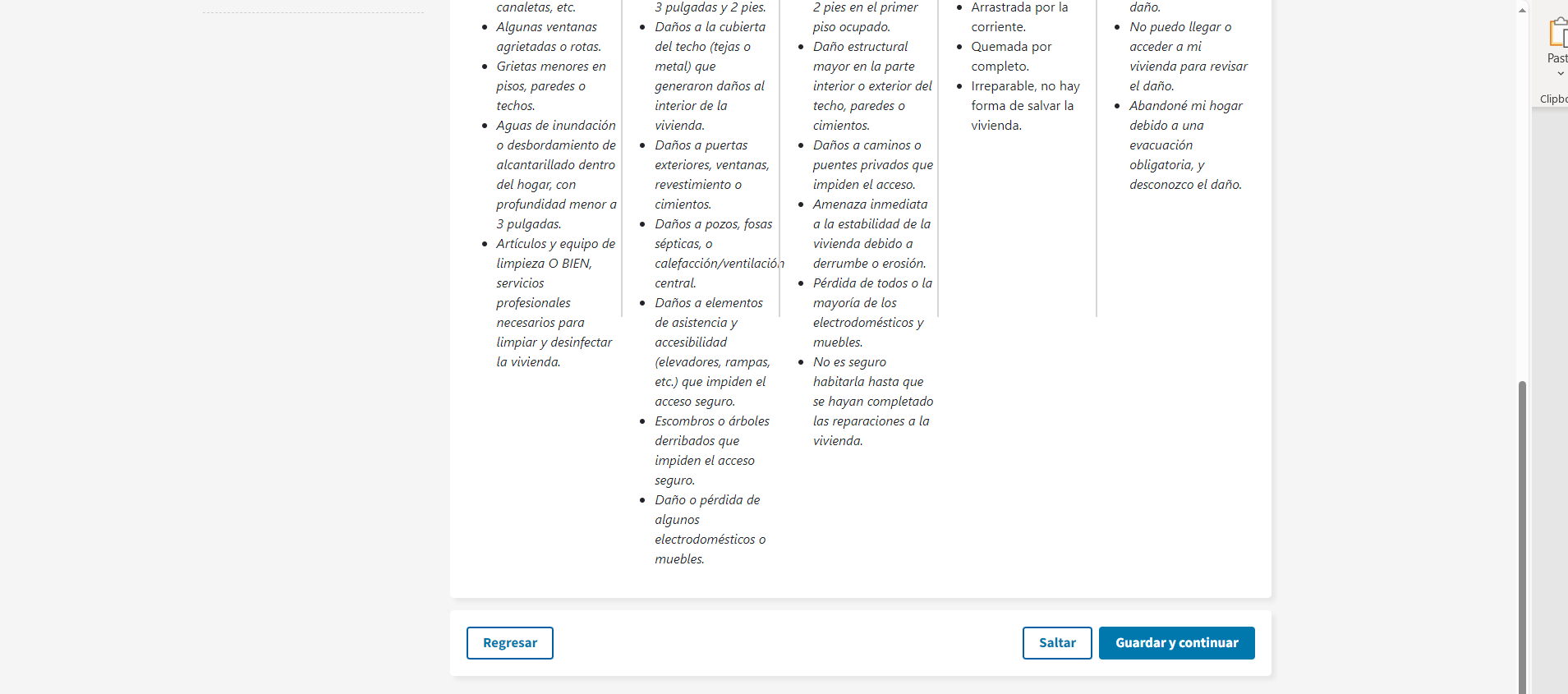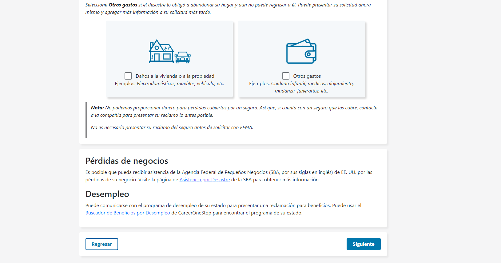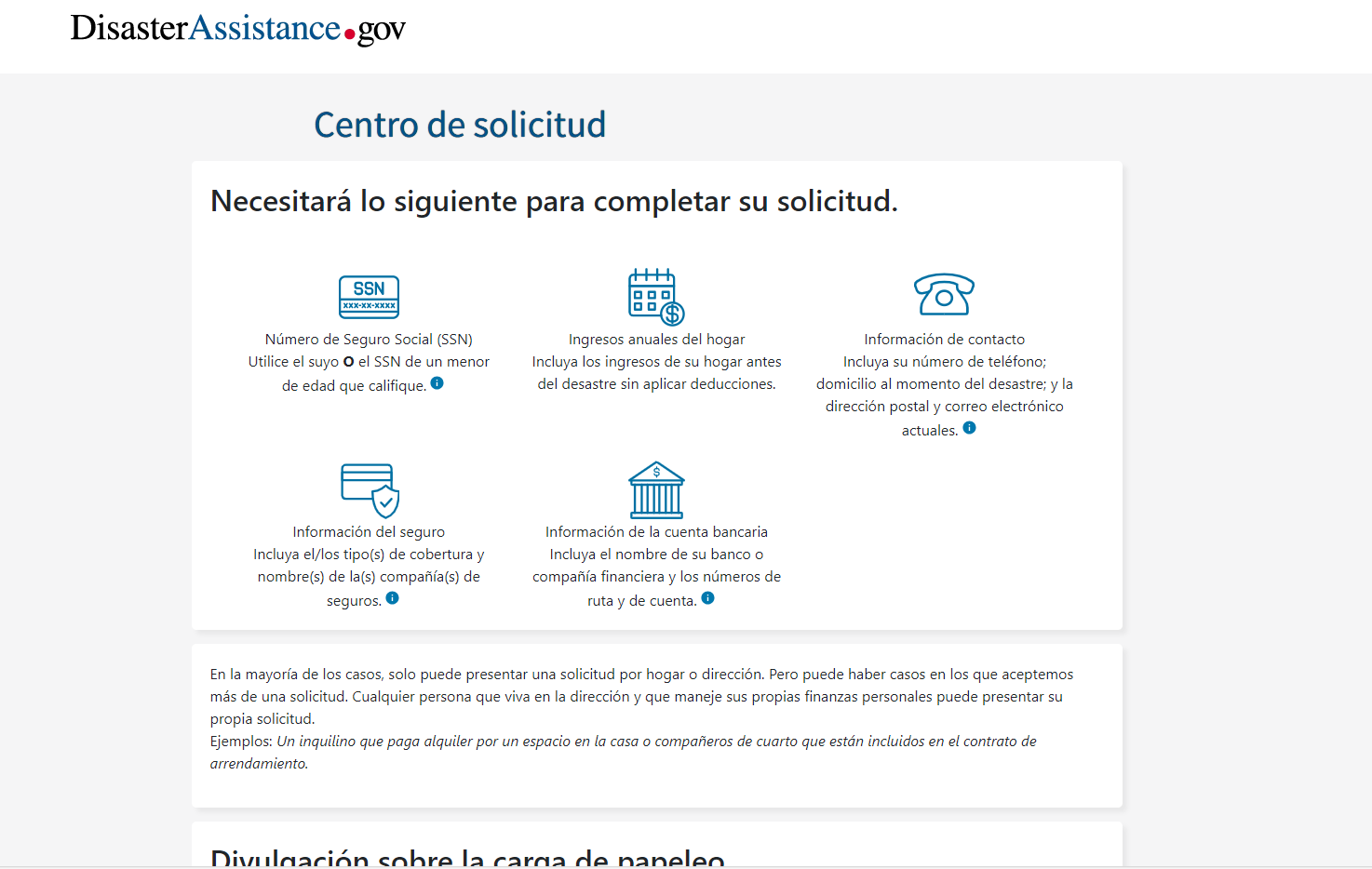Disaster Application Process/Spanish Document