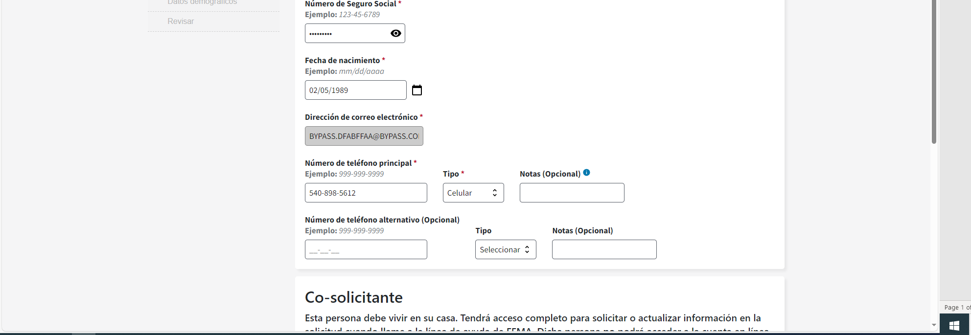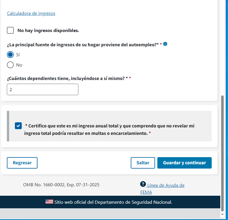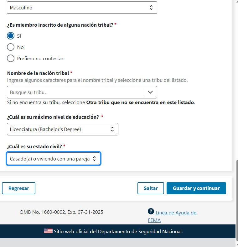 FEMA Form FF-104-F Tele-Registration, Registro Para Asistencia De Desastre