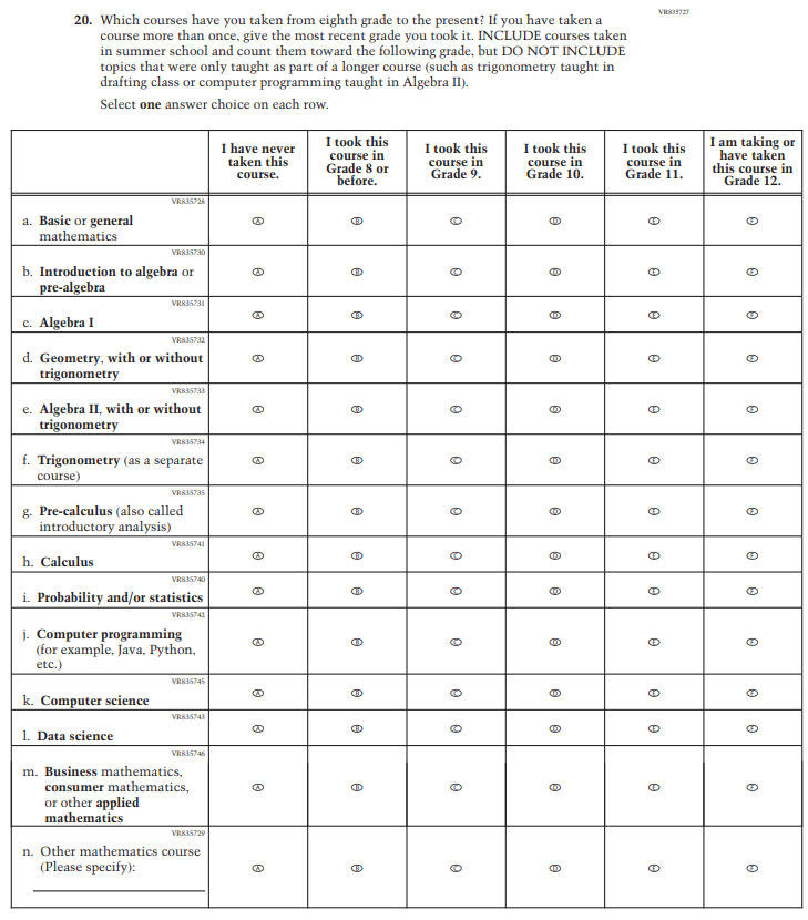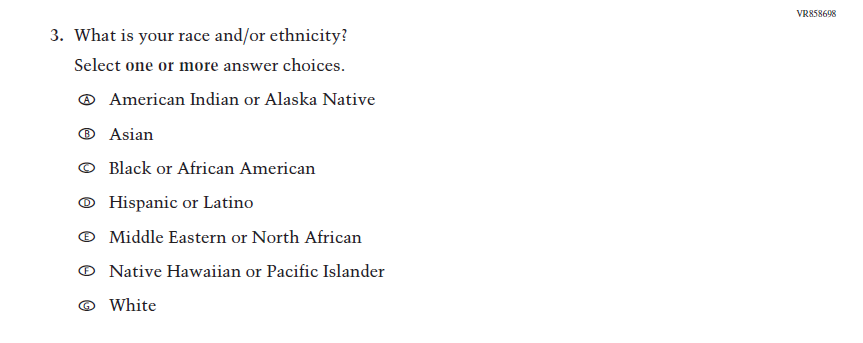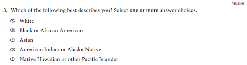 This Item was dropped and replaced with an updated Item (VR858698) that adheres to OMB updated Statistical Policy Directive No. 15. |