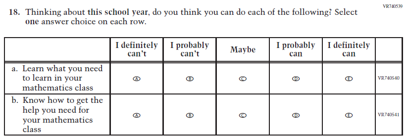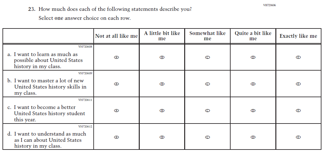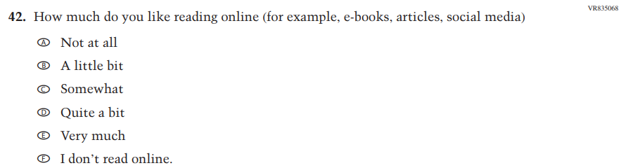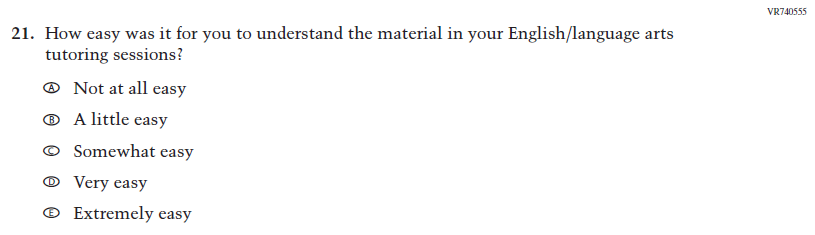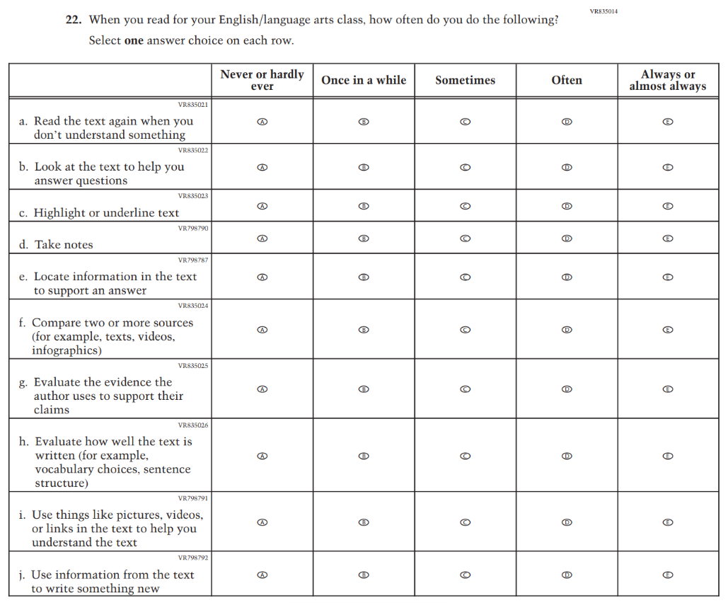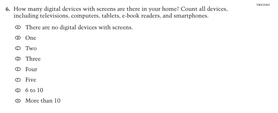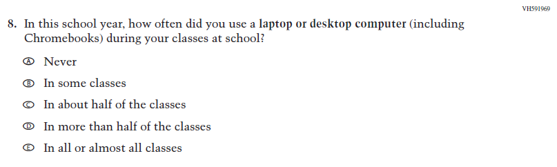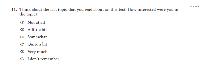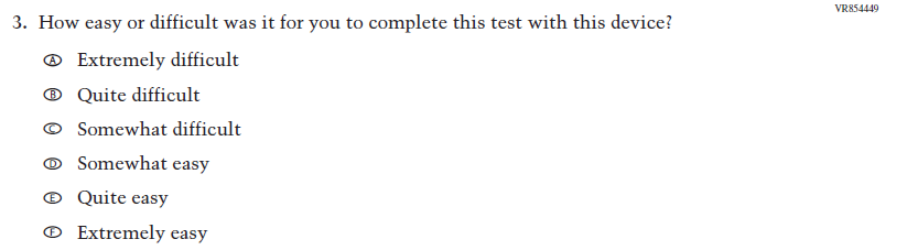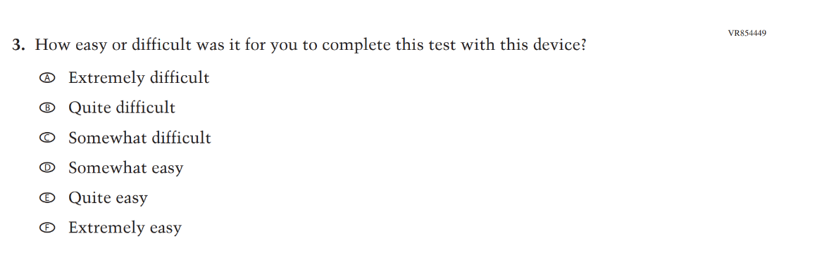 This Item was added to understand students’ experiences with using their devices to take the assessment. |