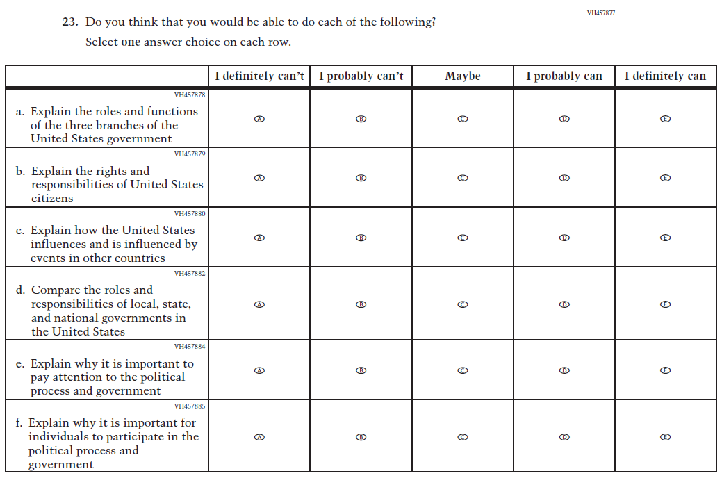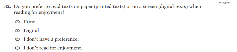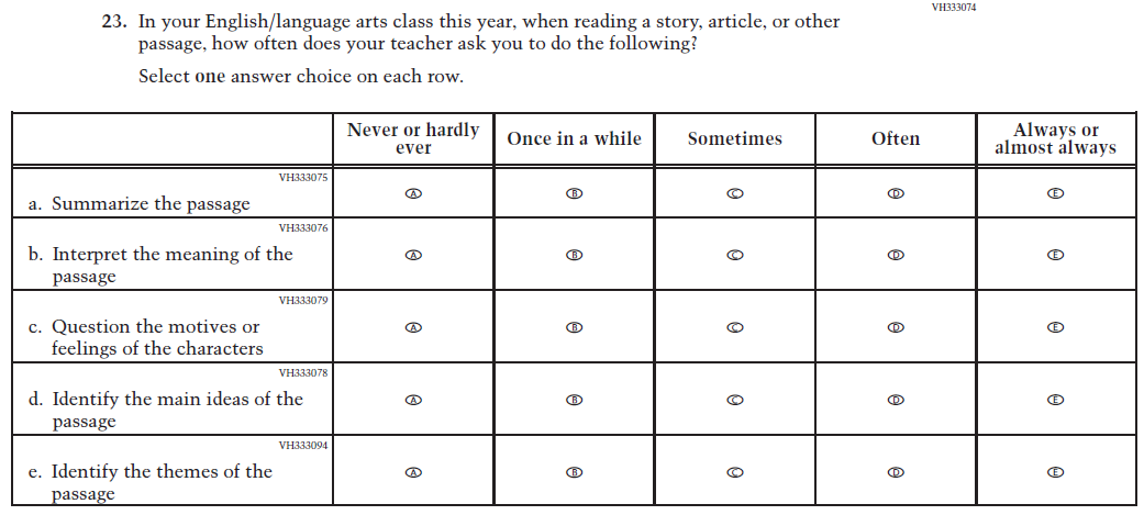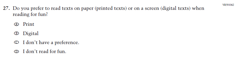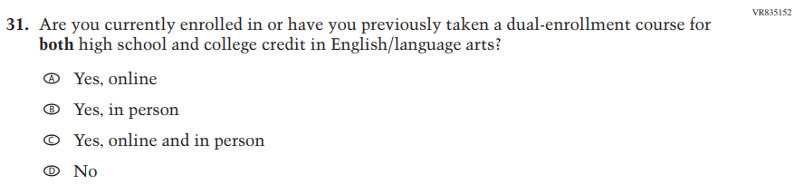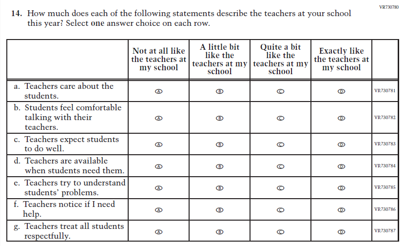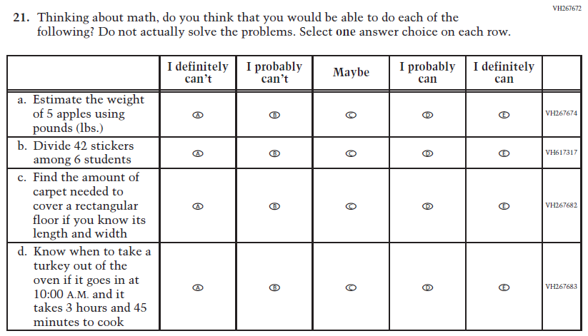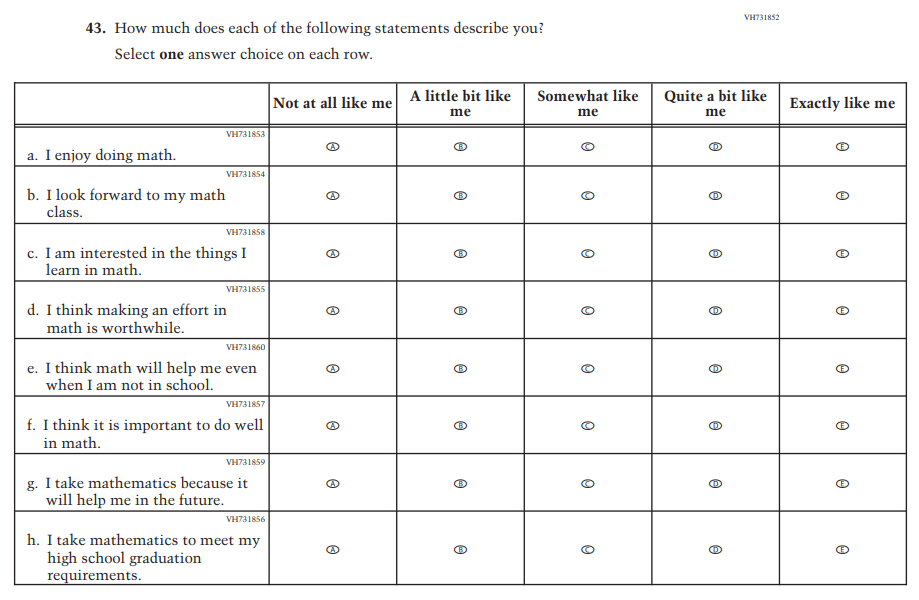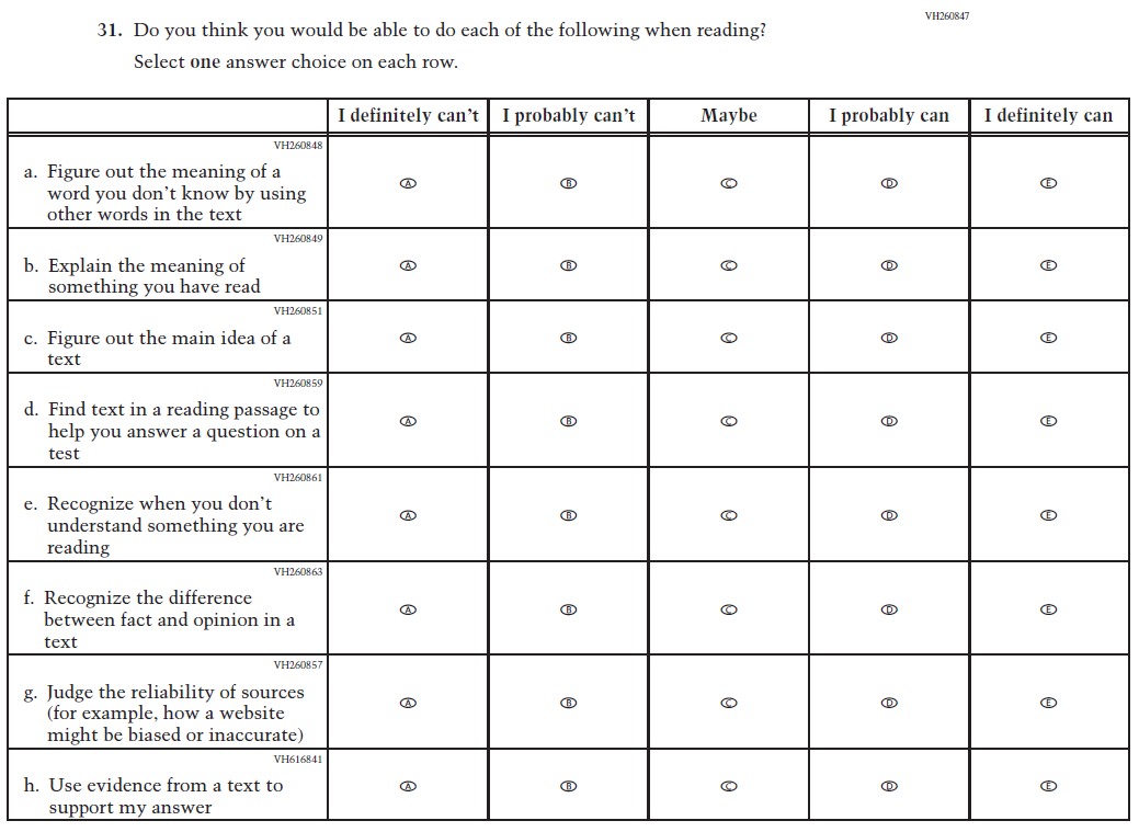 This Item was added to understand students’ experiences with using their devices to take the assessment. |