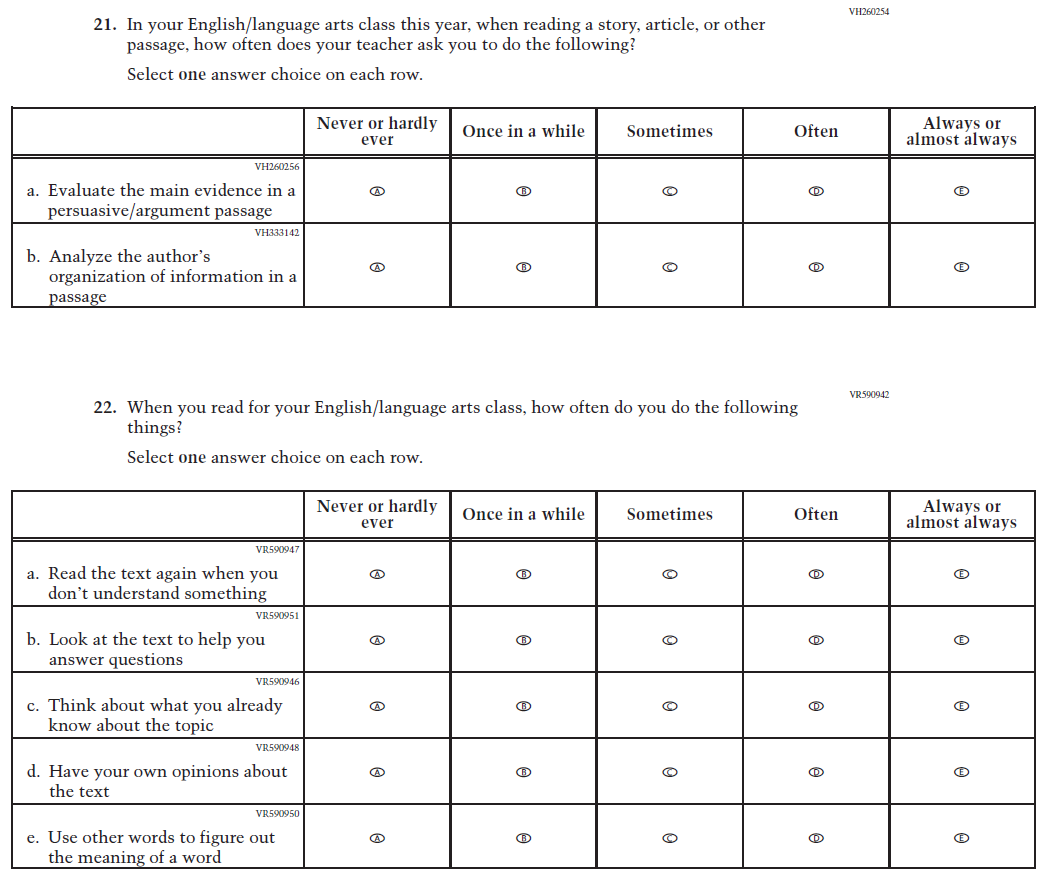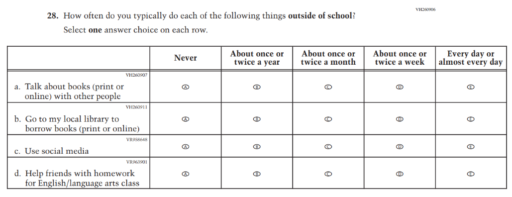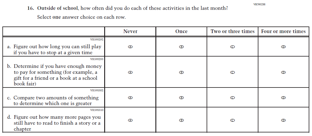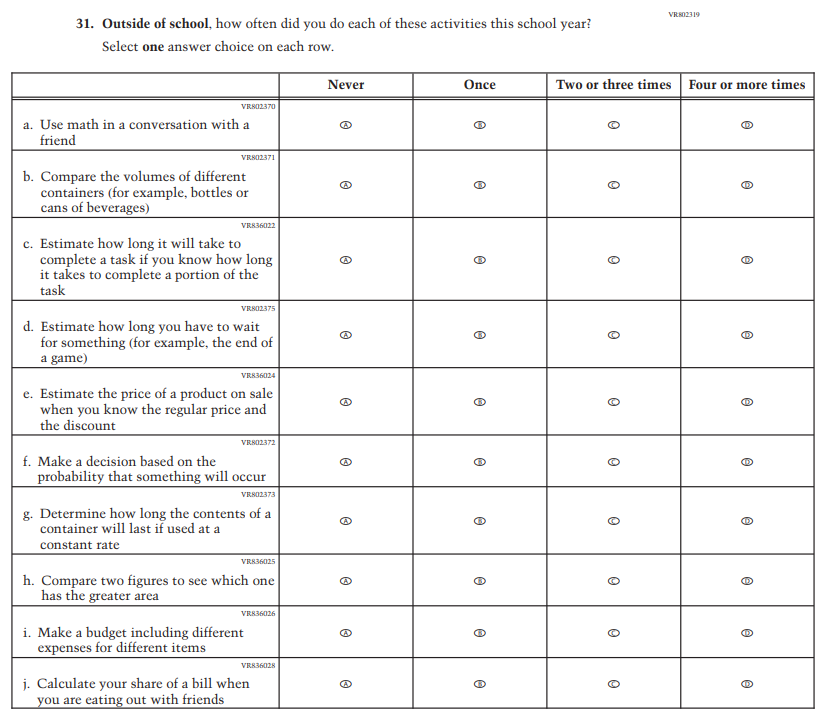 Learning Recovery Items were dropped from the 2026 NAEP Assessment. |