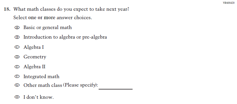 This item was developed to measure content aligned with the new Mathematics framework. |
