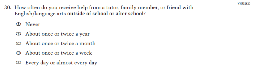 This item captures the important aspect of help or tutoring received by students. |