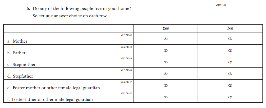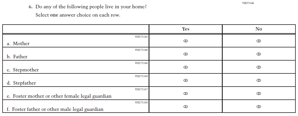 VH27144 was dropped and replaced with Item VR935135 as an updated format for collecting information on parent/ guardian education and employment. |