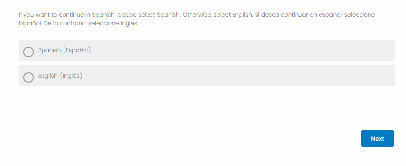 Once Spanish is selected, the following text appears,