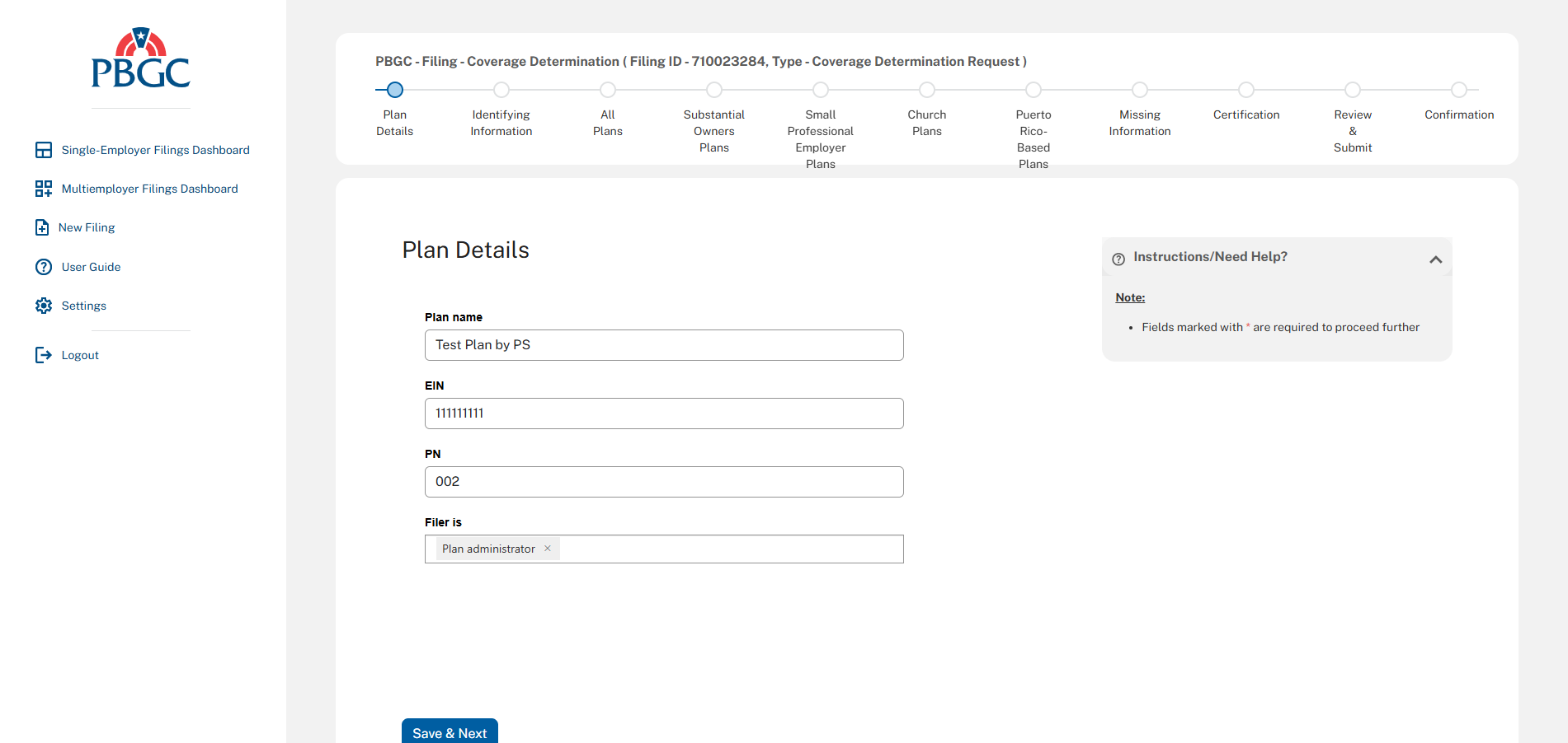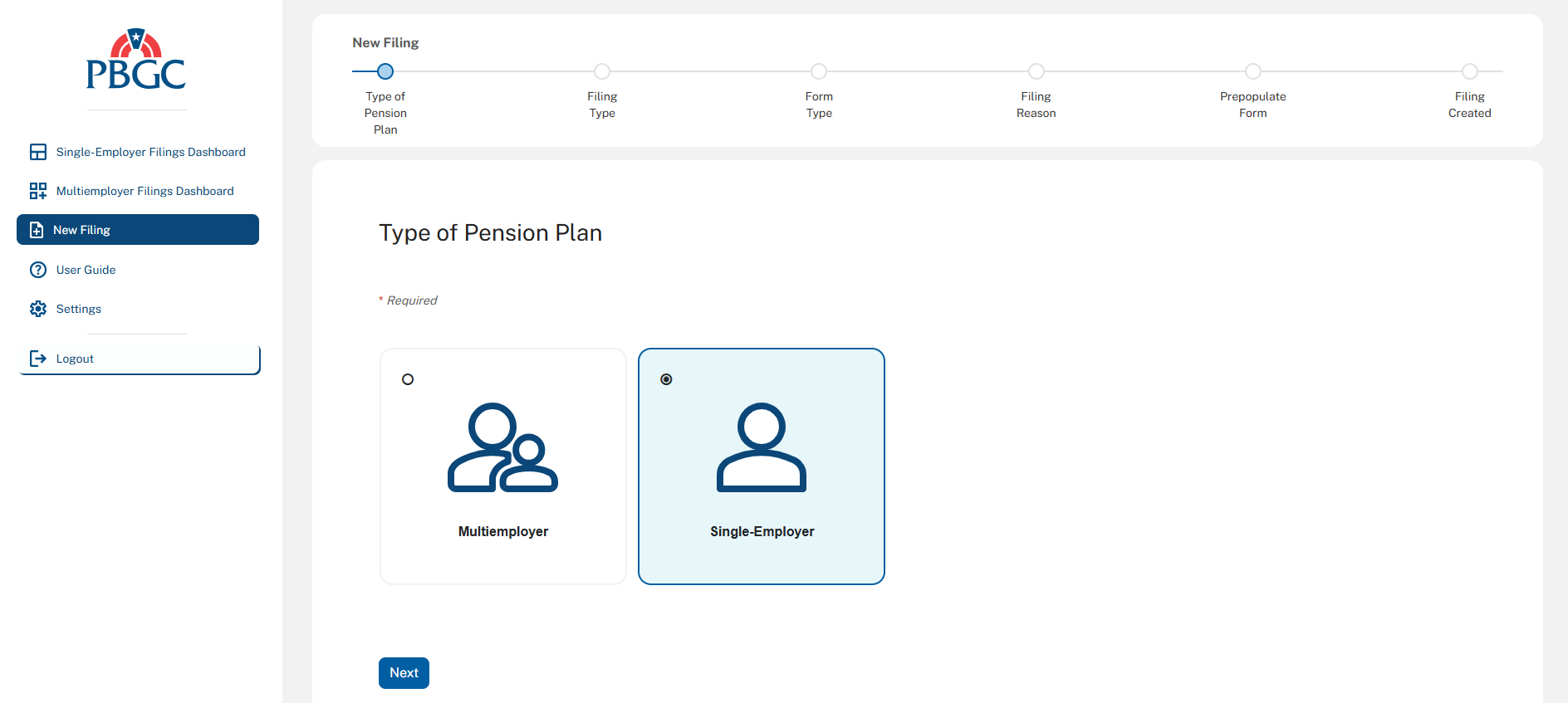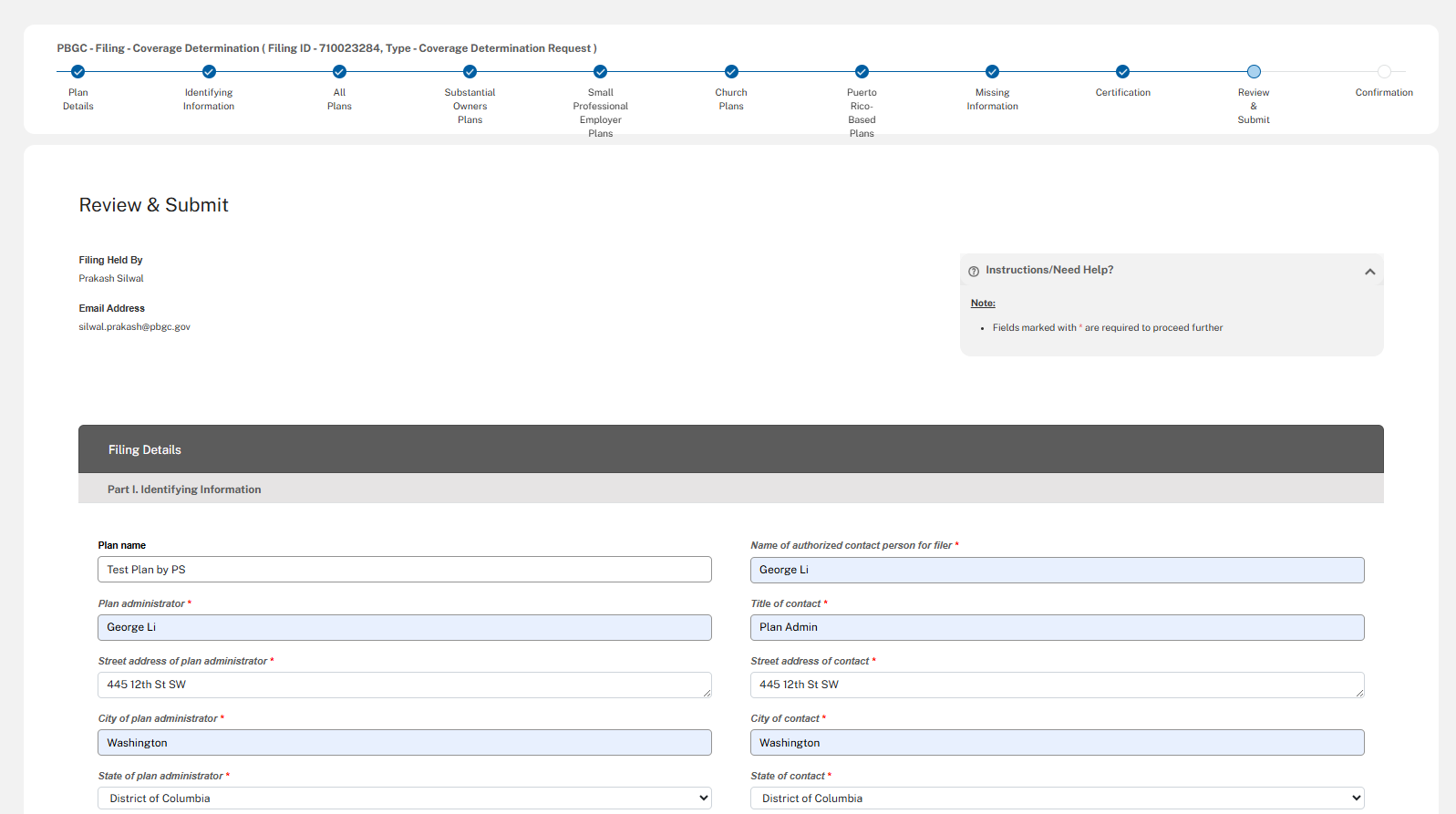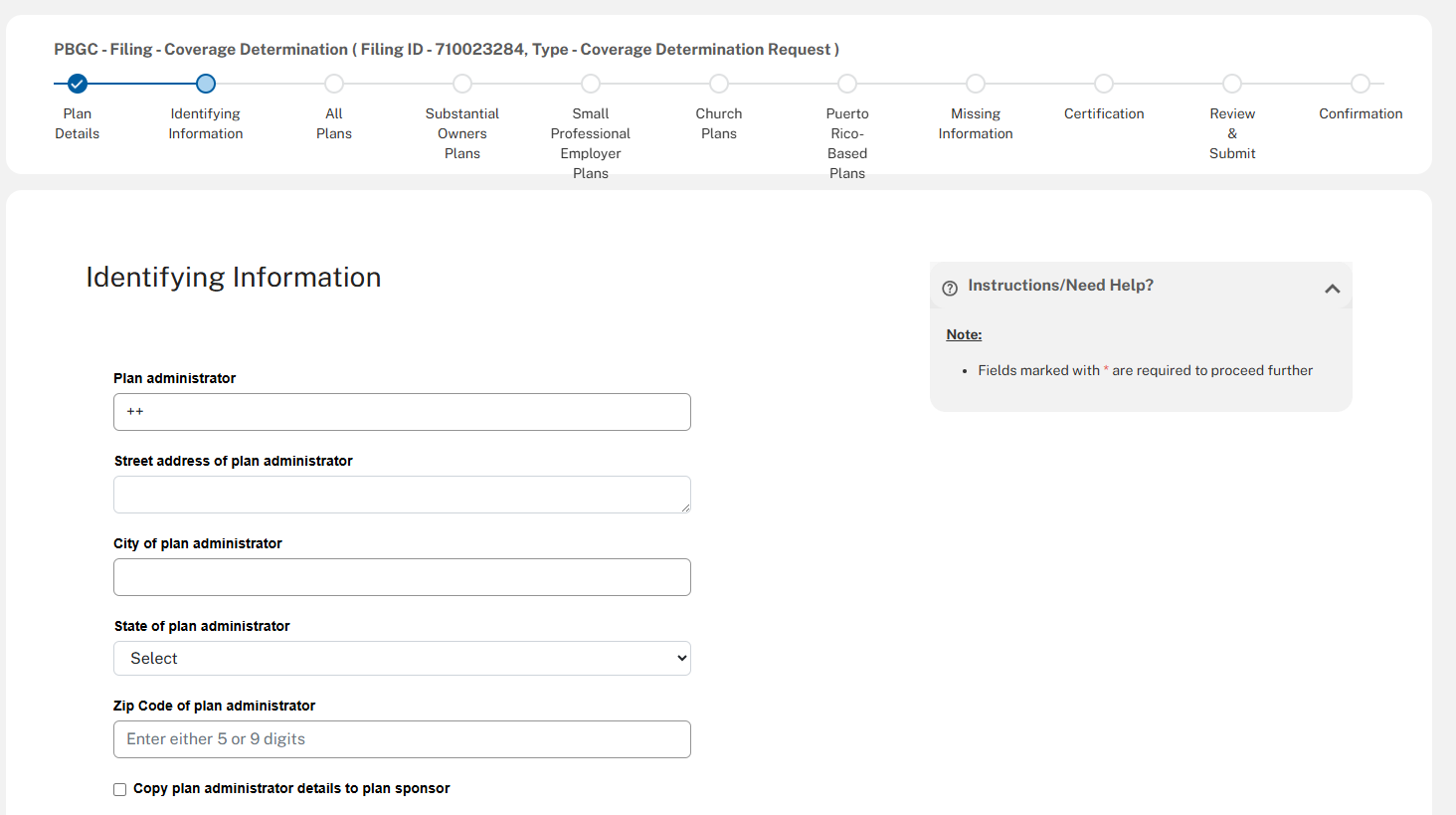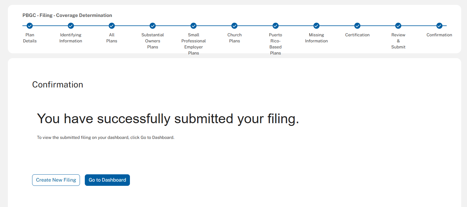 The following screenshots demonstrate what the coverage determination filing module in PBGC’s e-Filing Portal will look like.